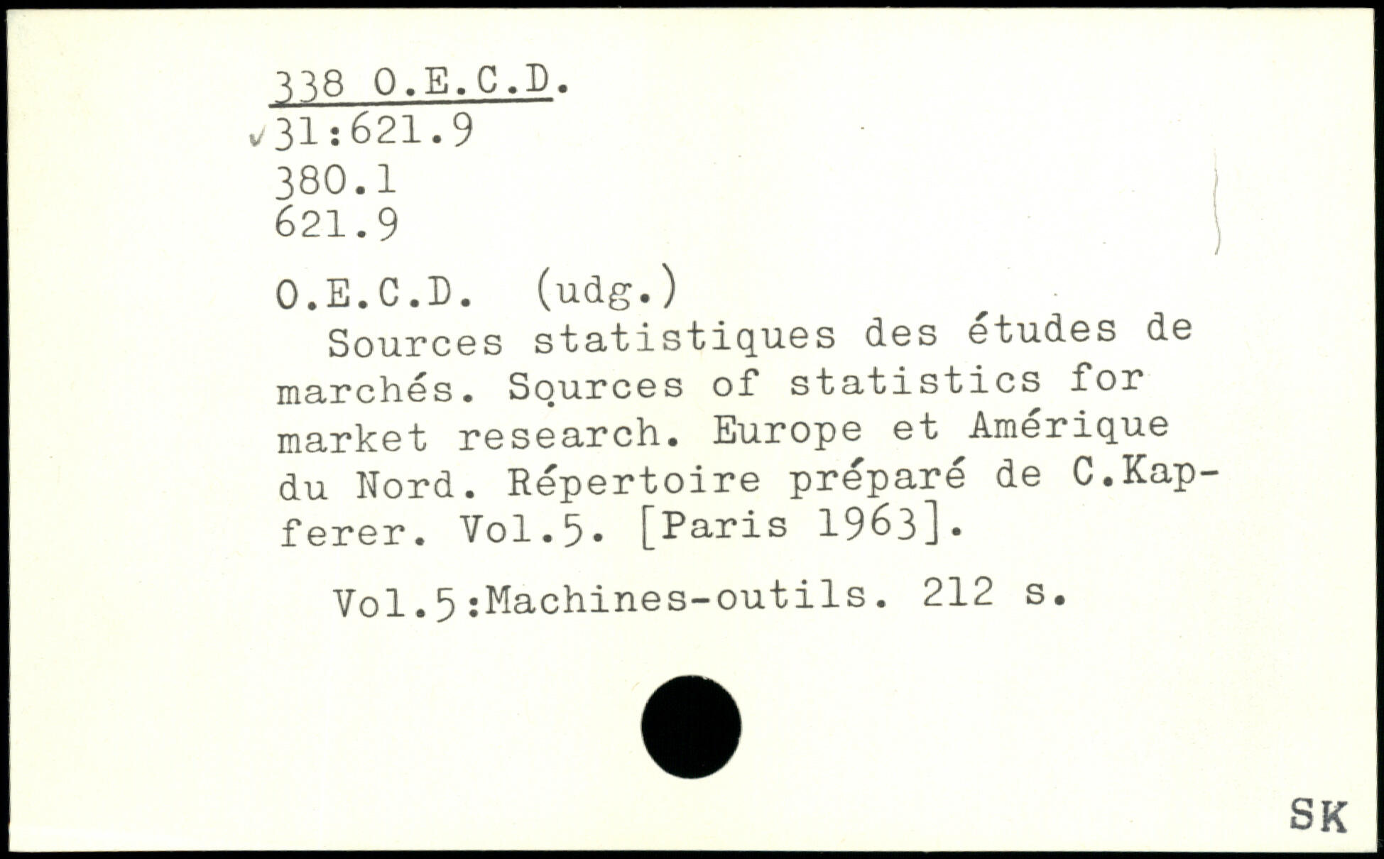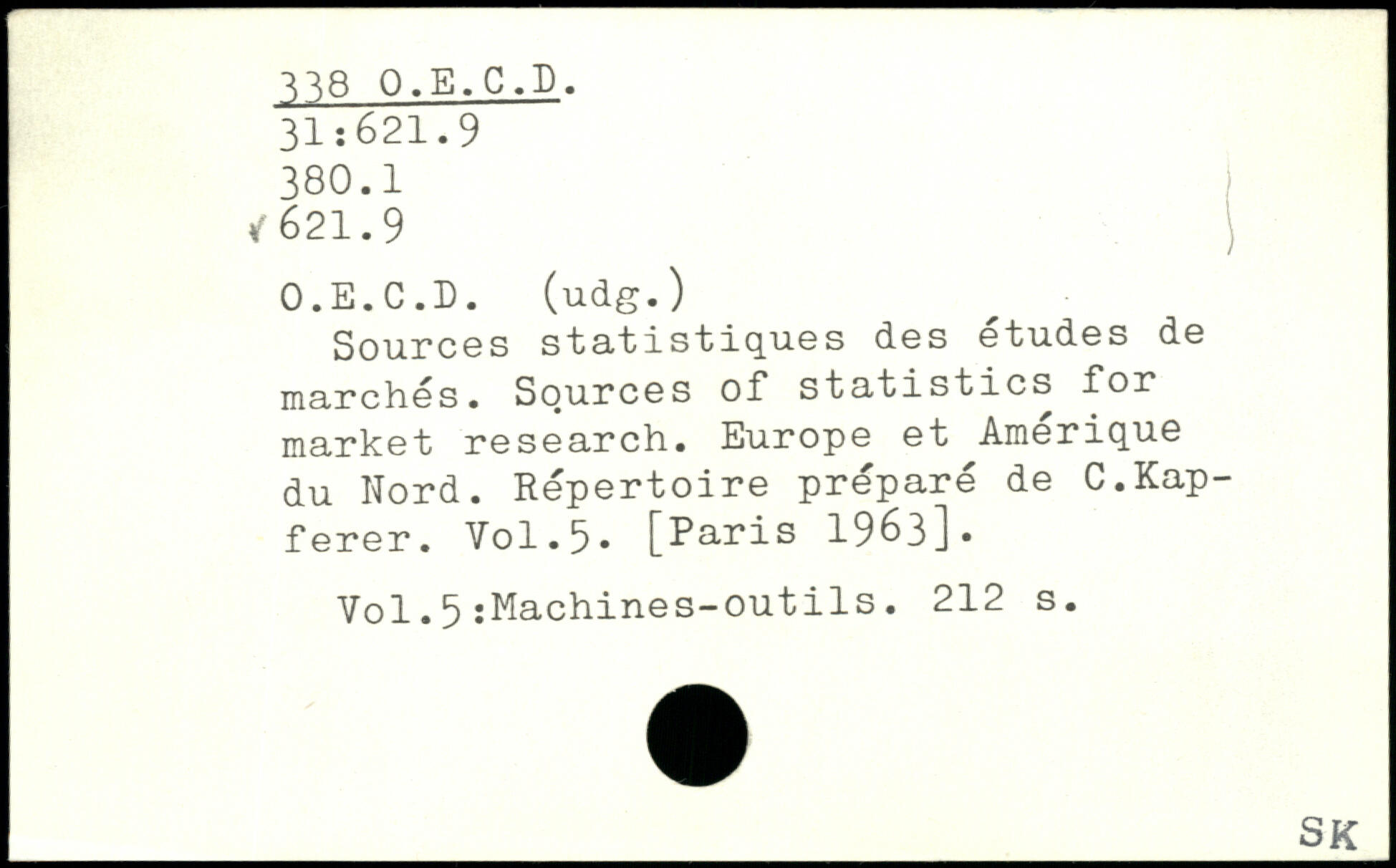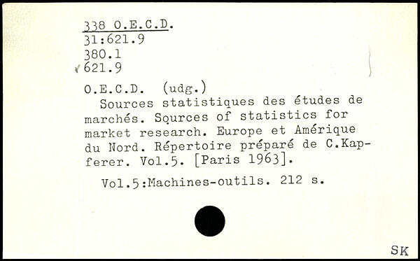 Sources statistiques des etudes de marchés. Sources of statistics for market research. Europe et^Amérique du Nord. Répertoire préparé de C.Kap-ferer.