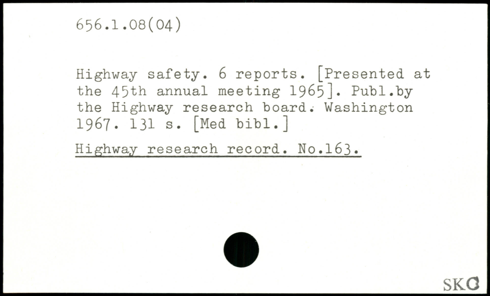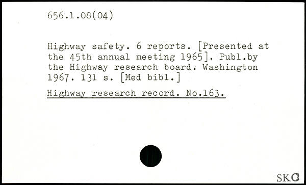 Highway safety. 6 reports. [Presented at the 45th annual meeting 19651. Publ.hy the Highway research board.