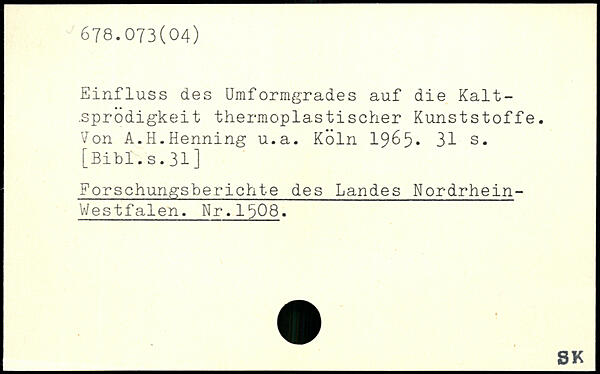 Einfluss des Umformgrades auf die Kaltsprödigkeit thermoplastischer Kunststoffe. Von A.H.Henning u.a.
