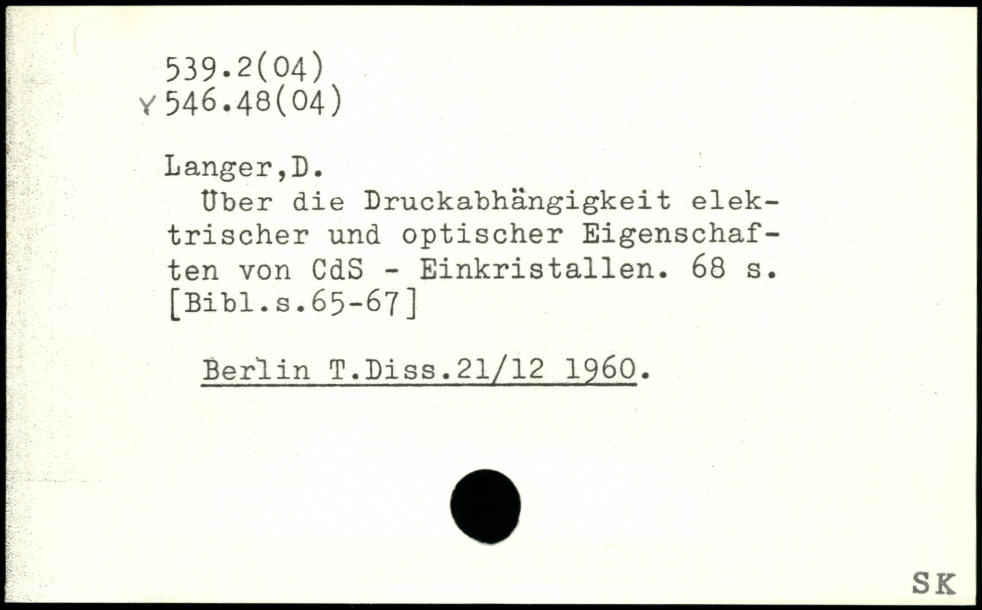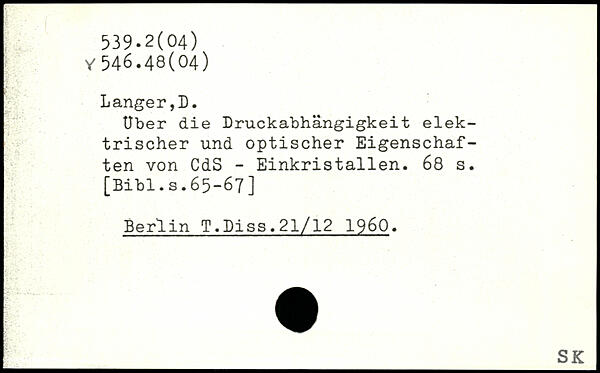 Uber die Druckabhängigkeit elektrischer und optischer Eigenschaften von CdS - Einkristallen.