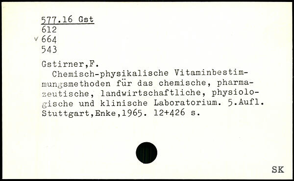 Chemisch-physikalische Vitaminbestim-mungsmethoden für das chemische, pharmazeutische, landwirtschaftliche, physiologische und klinische Laboratorium.