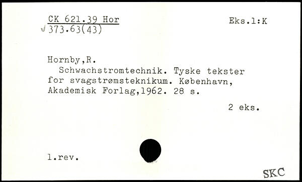 Schwachstromtechnik. Tyske tekster for svagstrømsteknikum.