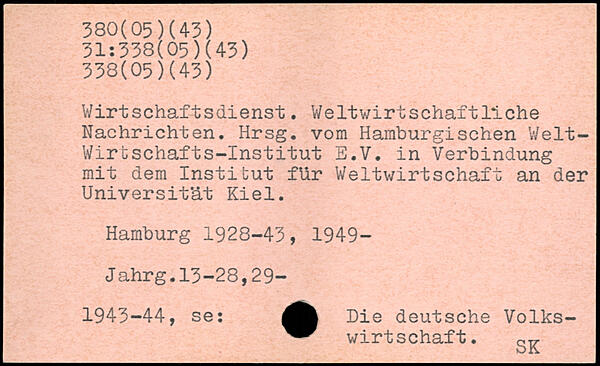 Wirtschaftsdienst. Weltwirtschaftliche Nachrichten. Hrsg, vom Haraburgischen Weltwirtschaft s-Institut E.V. in Verbindung mit dem Institut für Weltwirtschaft an der Universität Kiel.