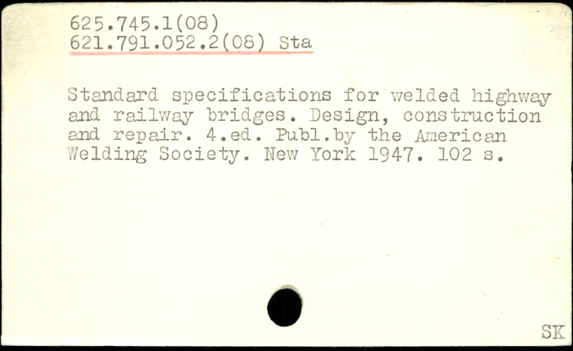Standard specifications for welded highway and railway bridges. Design, construction and repair.