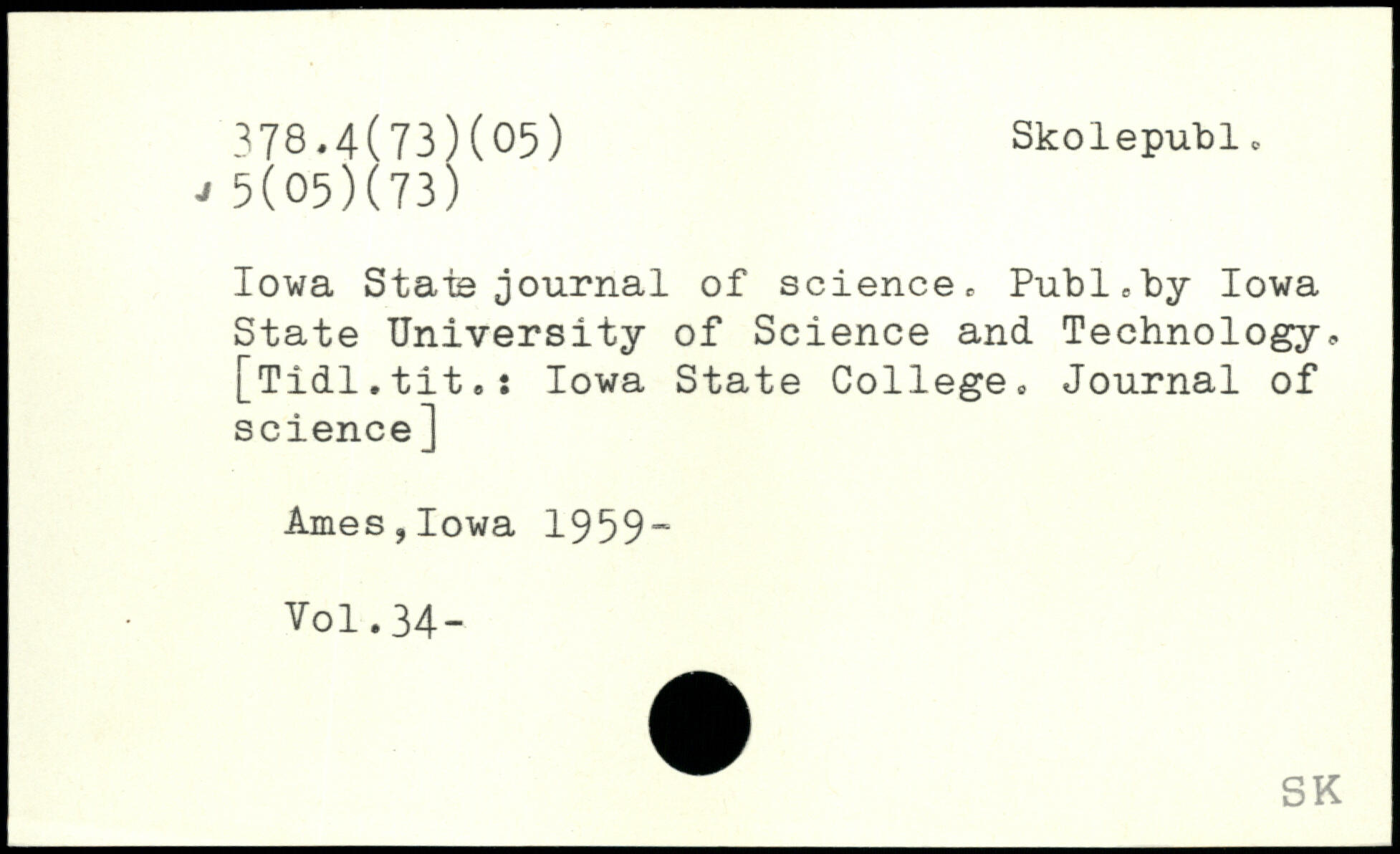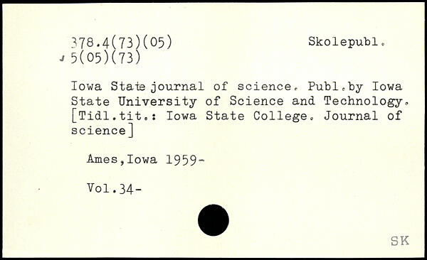 Iowa Staie journal of sciencec Publ,by Iowa State University of Science and Technology, [Tidl.tit.: Iowa State College, Journal of science] Ames,Iowa 1959“