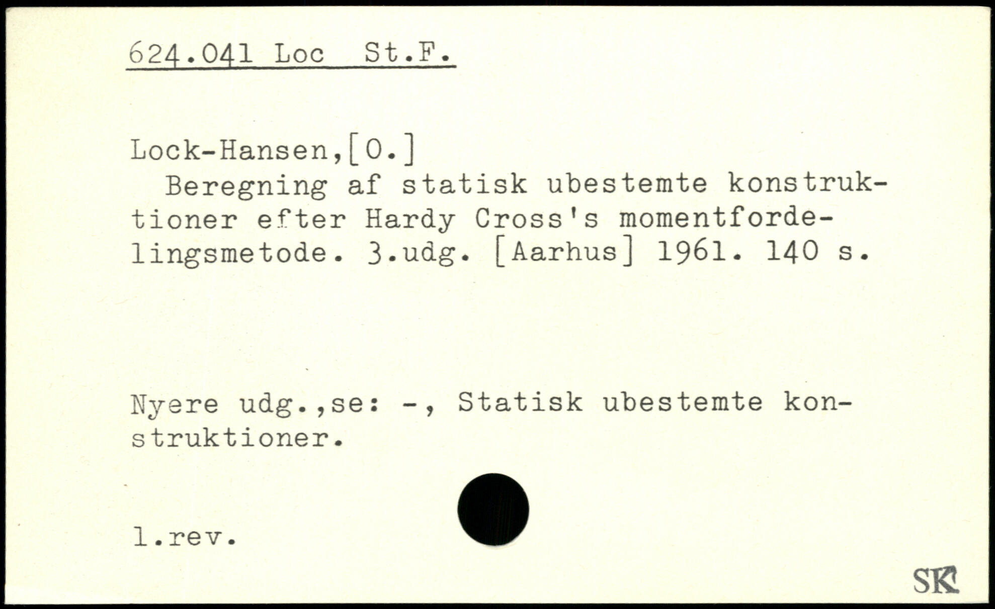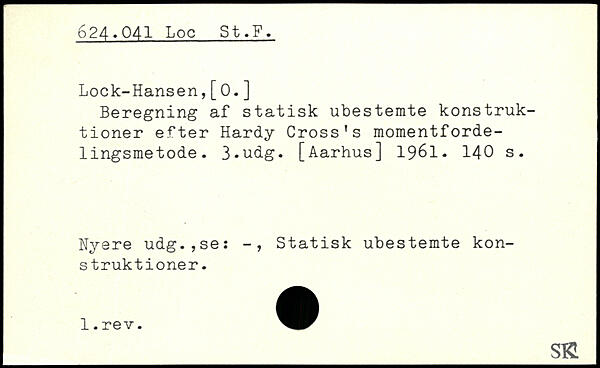 Lock-Hansen,[0.] Beregning af statisk ubestemte konstruktioner efter Hardy Cross's momentfordelingsmetode.