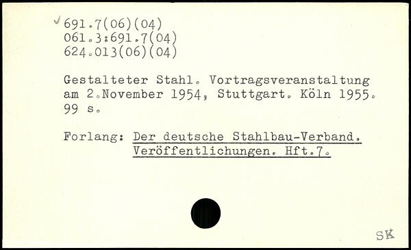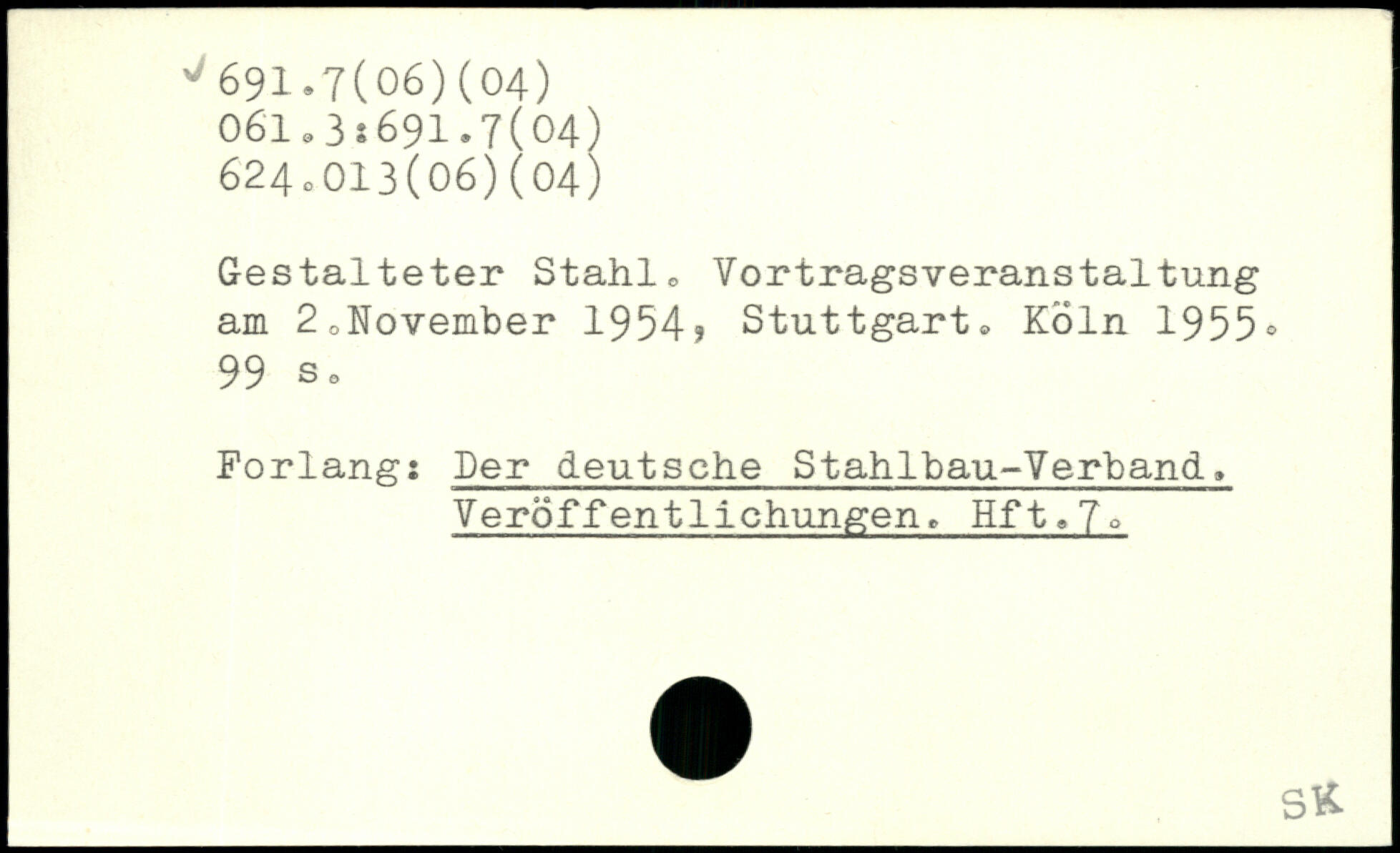 Gestalteter Stahl. Vortragsveranstaltung am 2.November 1954> Stuttgart.