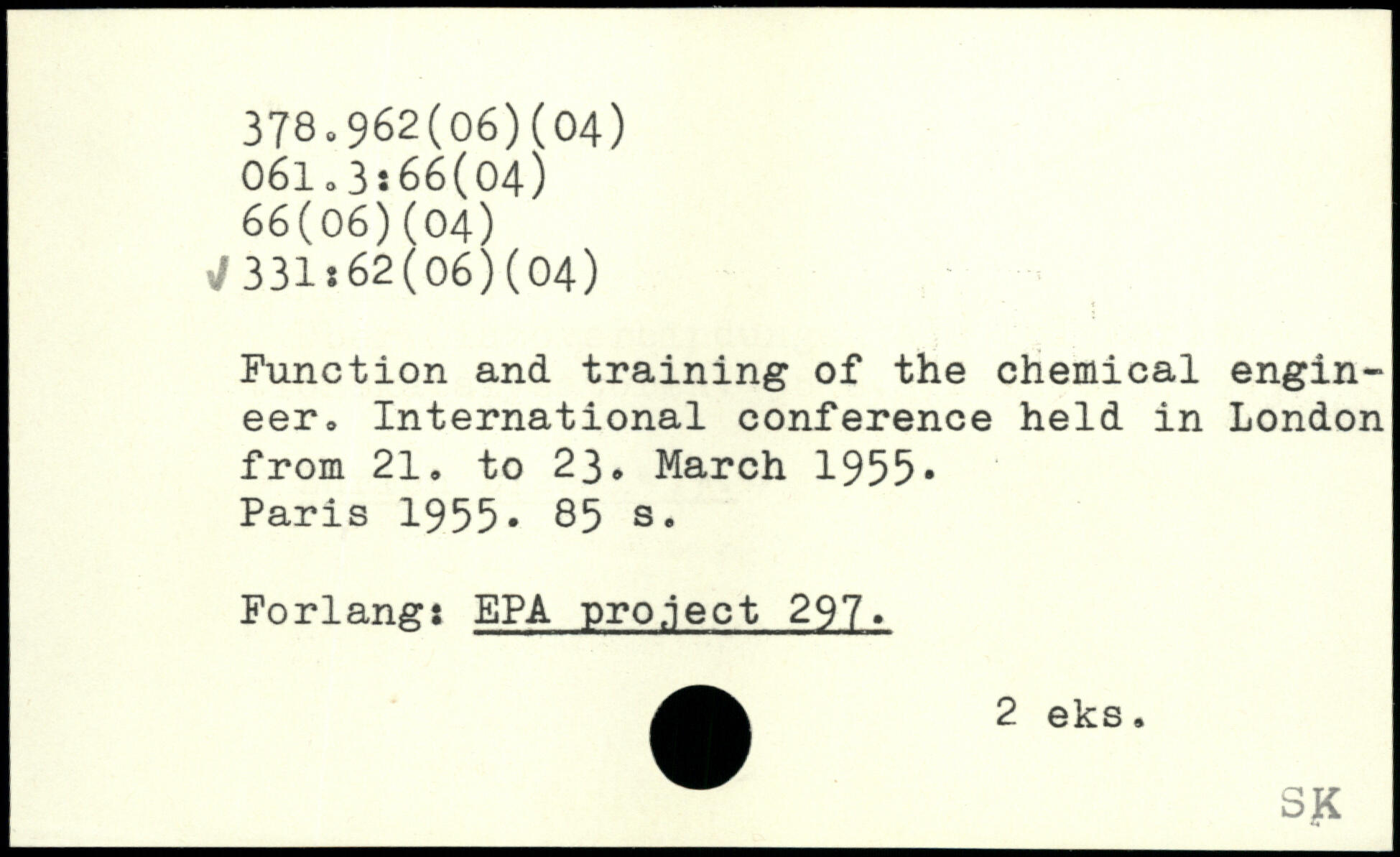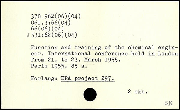 Function and training of the chemical engineer, International conference held in London from 21. to 23. March 1955-