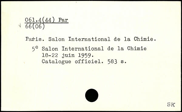 Paris. Salon International de la Chimie. 5e Salon International de la Chimie 18-22 juin 1959. Catalogue officiel.
