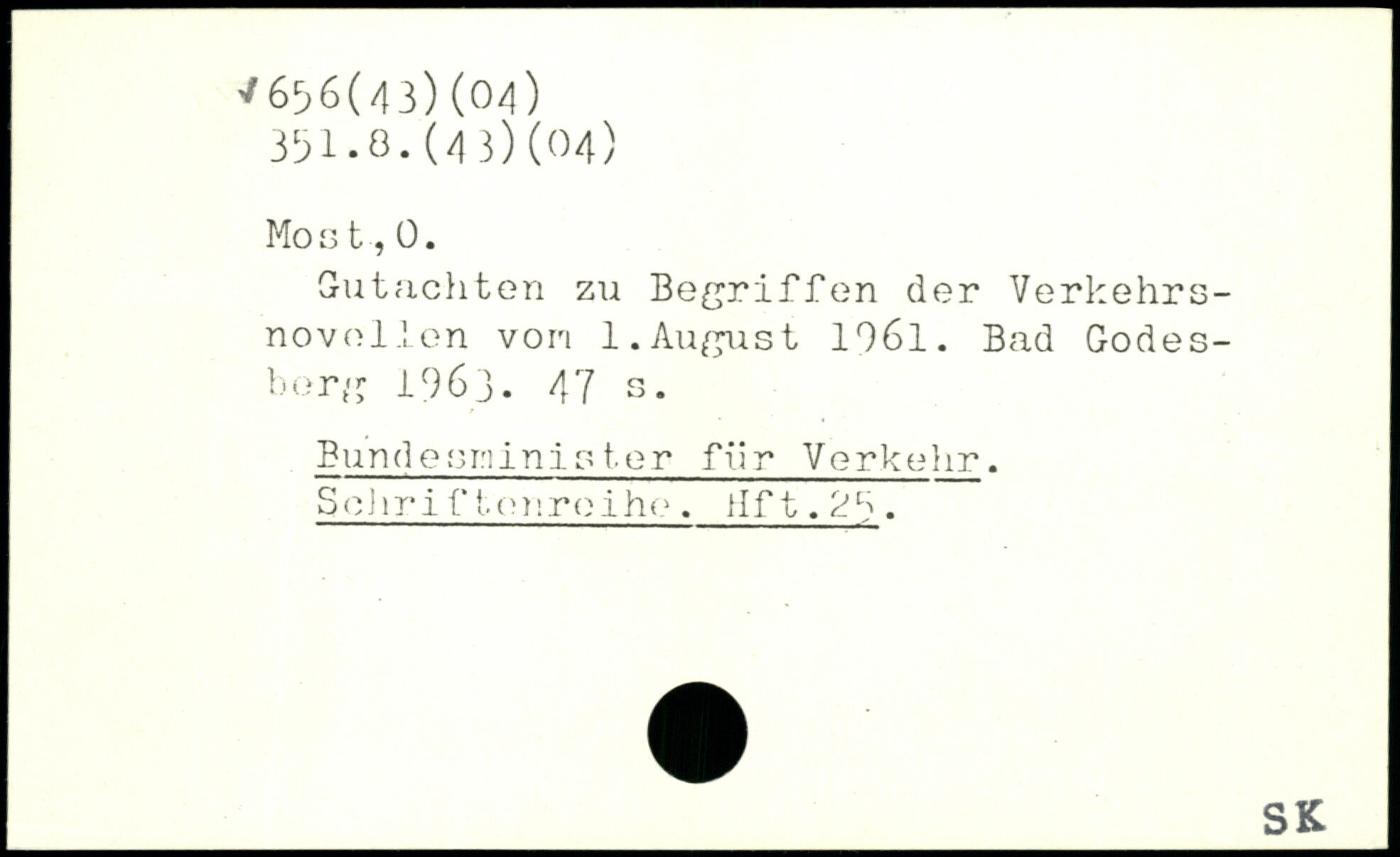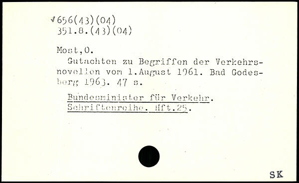 Mo s t, 0. Gutachten zu Begriffen der Verkehrsnovellen von 1.August 1061. Bad Godesberg 1963.