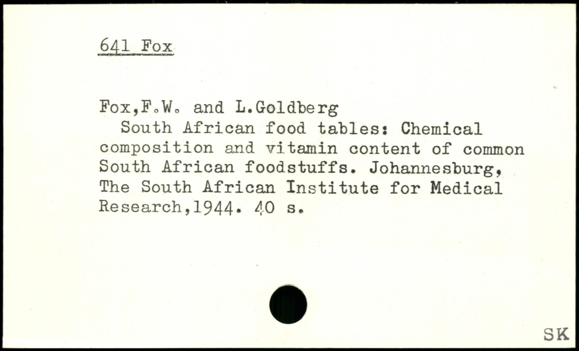 South African food tables: Chemical composition and vitamin content of common South African foodstuffs. Johannesburg, The South African Institute for Medical Research,1944