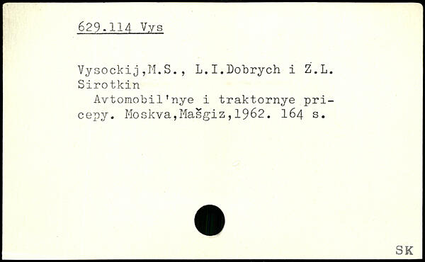 Vysockij,M.S., L.I.Dobrych i Z.L. Sirotkin Avtomobil’nye i traktornye pri-cepy.