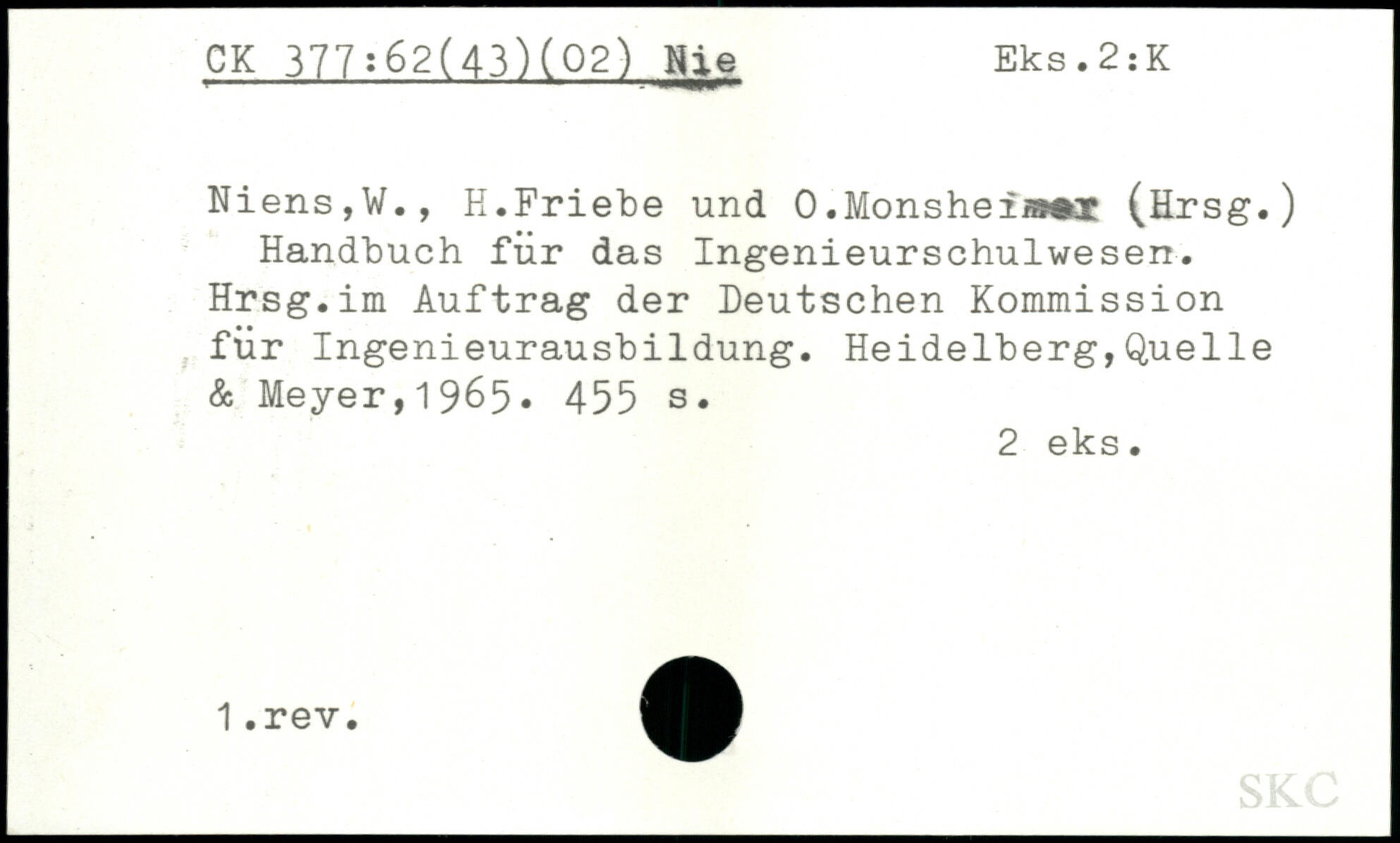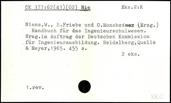 Niens,W., H.Friebe und 0 .Monshei,,r (Hrsg.) Handbuch für das Ingenieurschulwesen. Hrsg.im Auftrag der Deutschen Kommission für Ingenieurausbildung.