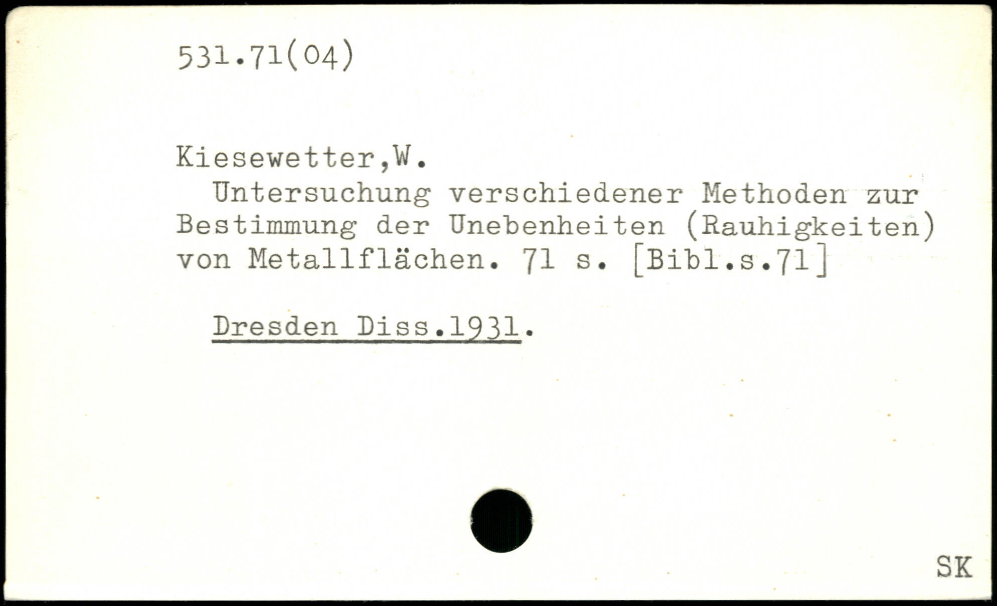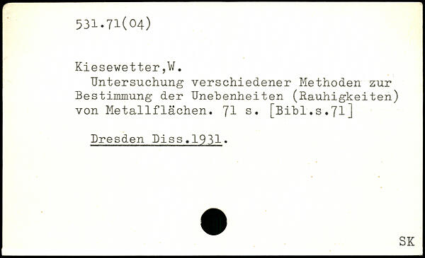 Untersuchung verschiedener Methoden zur Bestimmung der Unebenheiten (ßauhigkeiten) von Metallflächen. J