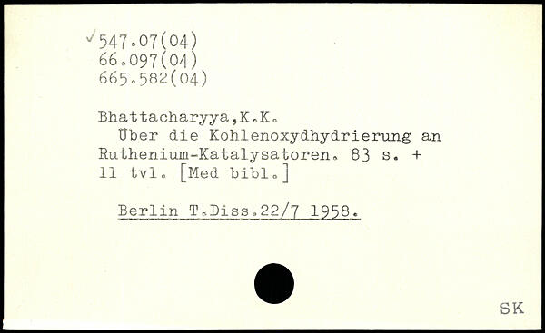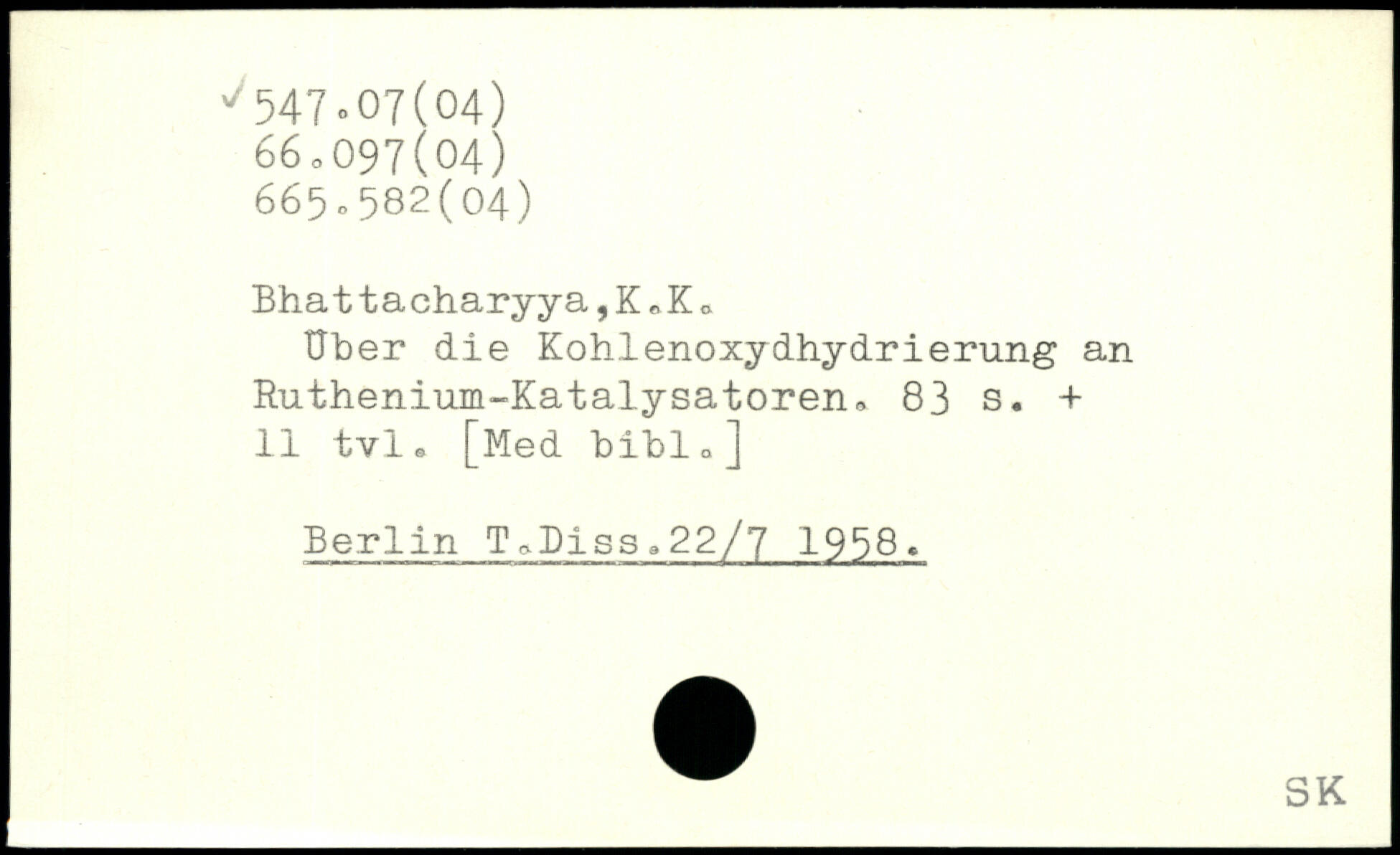 Bhattacharyya,KftK0 Uber die Kohlenoxydhydrierung an Ruthenium-Katalysatoren