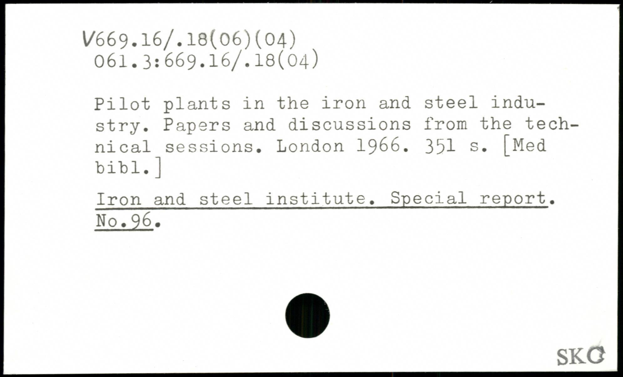 Pilot plants in the iron and steel industry. Papers and discussions from the technical sessions.