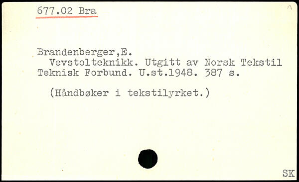 Vevstolteknikk. Utgitt av Norsk Tekstil Teknisk Forbund. U.st.1948.