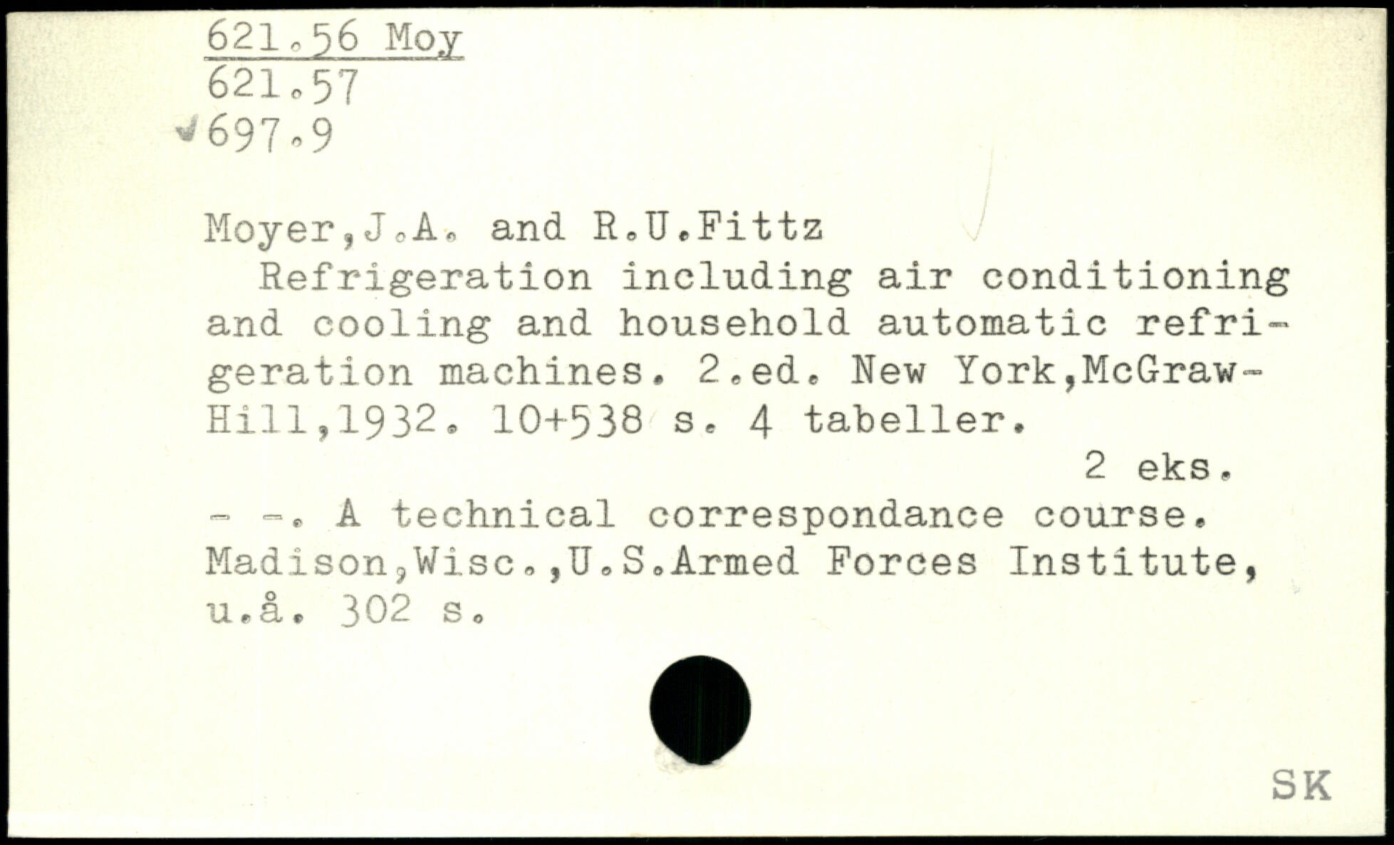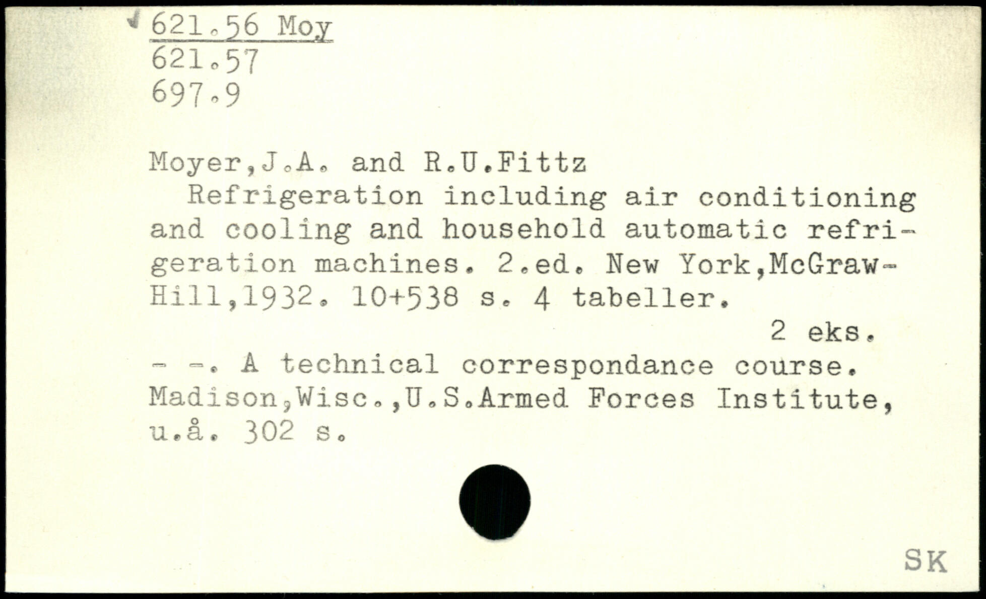 Moyer,JoAe and RoU.Fittz Refrigeration including air conditioning and cooling and household automatic refrigeration machines. 2,ede