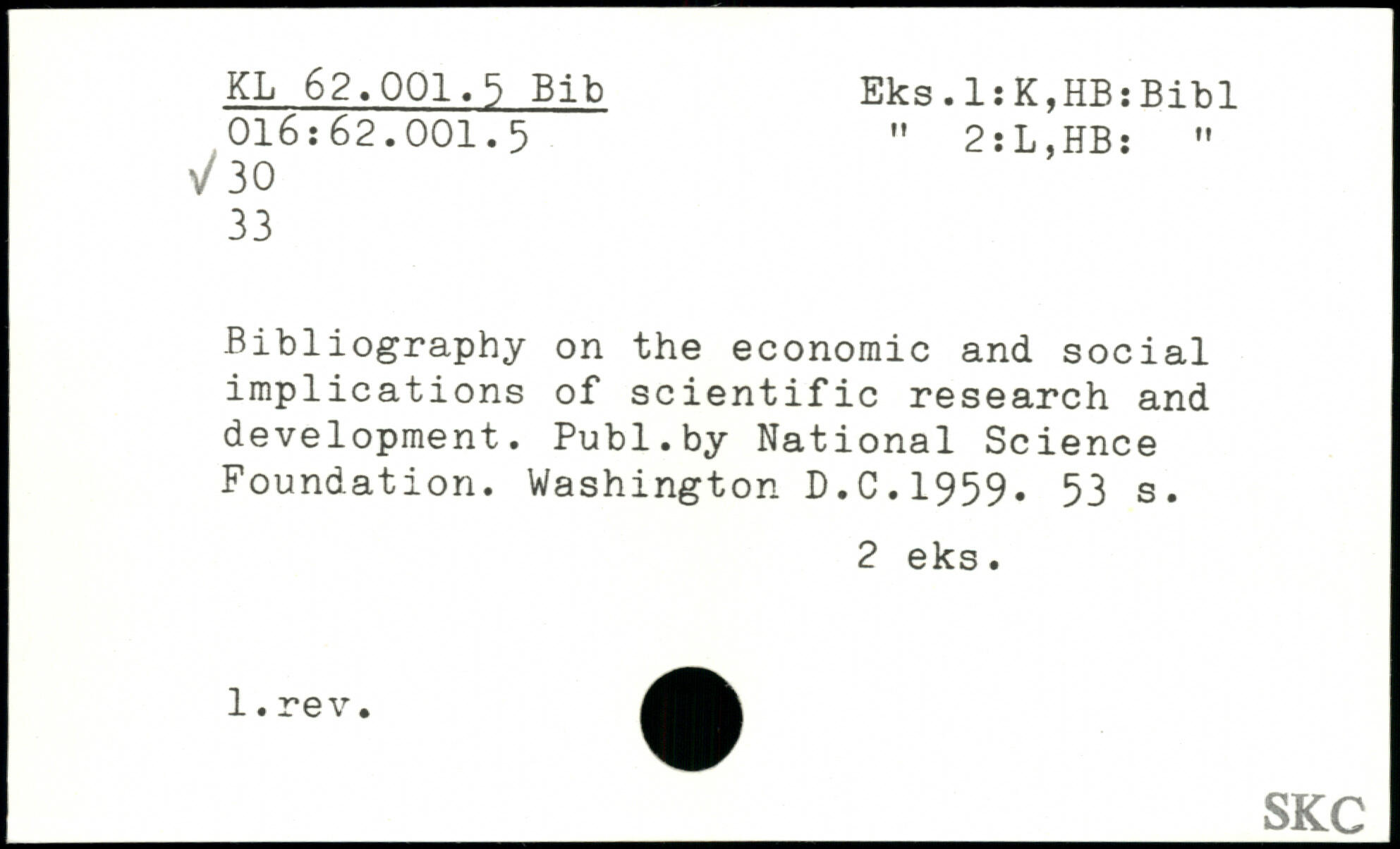 Bibliography on the economic and social implications of scientific research and development.
