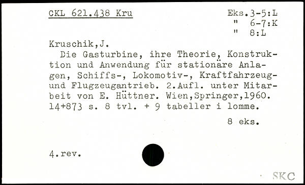 Die Gasturbine, ihre Theorie, Konstruktion und Anwendung für stationäre Anlagen, Schiffs-, Lokomotiv-, Kraftfahrzeug-und Flugzeugantrieb.