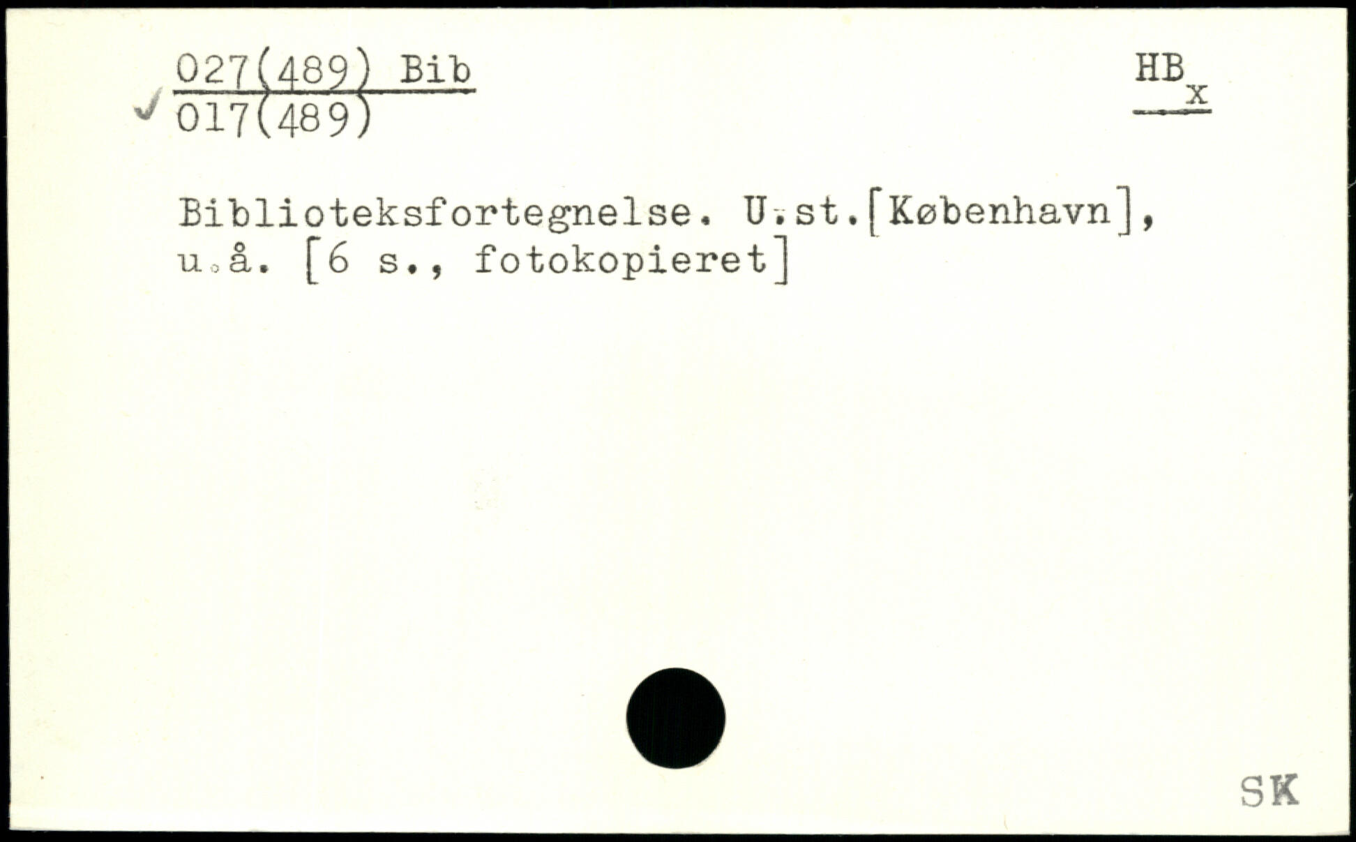 Biblioteksfortegnelse. U.st.[København], u,å. [