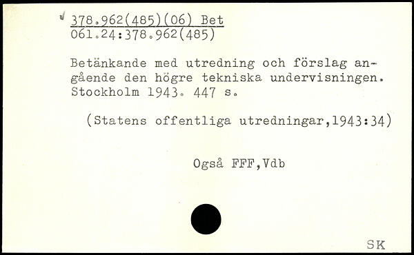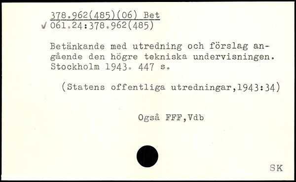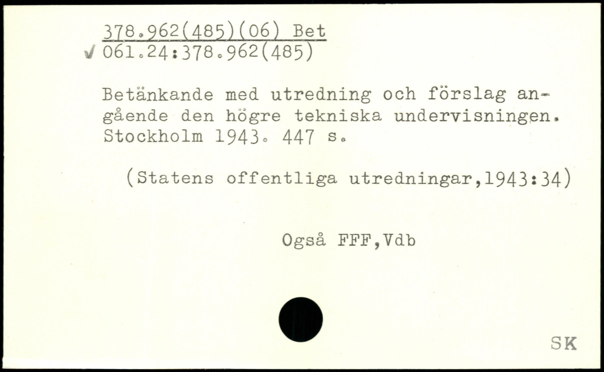 Betänkande med utredning och förslag angående den högre tekniska undervisningen.