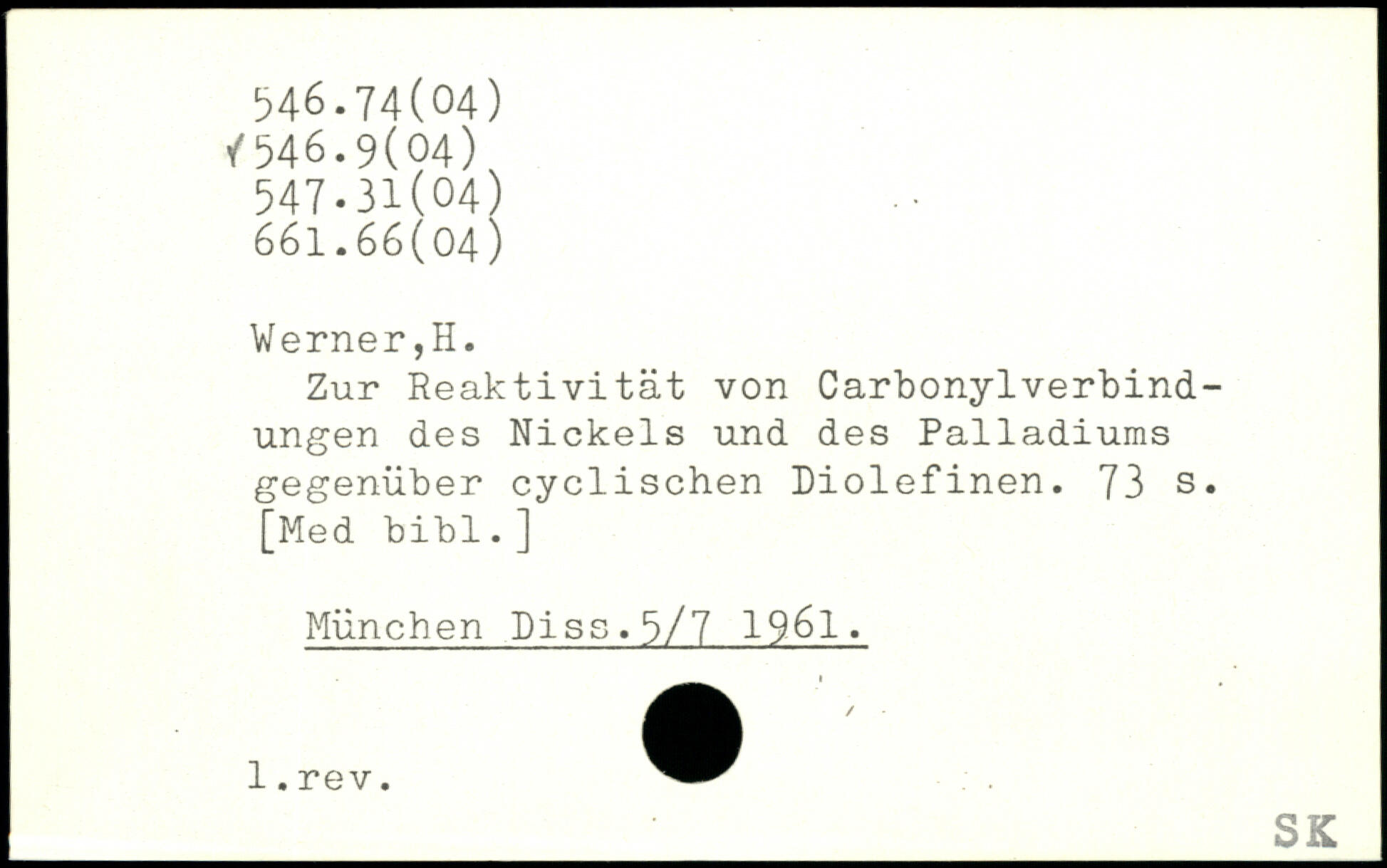 Zur Reaktivität von Carbonylverbindungen des Nickels und des Palladiums gegenüber cyclischen Diolefinen.