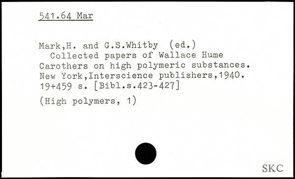 Collected papers of Wallace Hume Carothers on high polymeric substances.