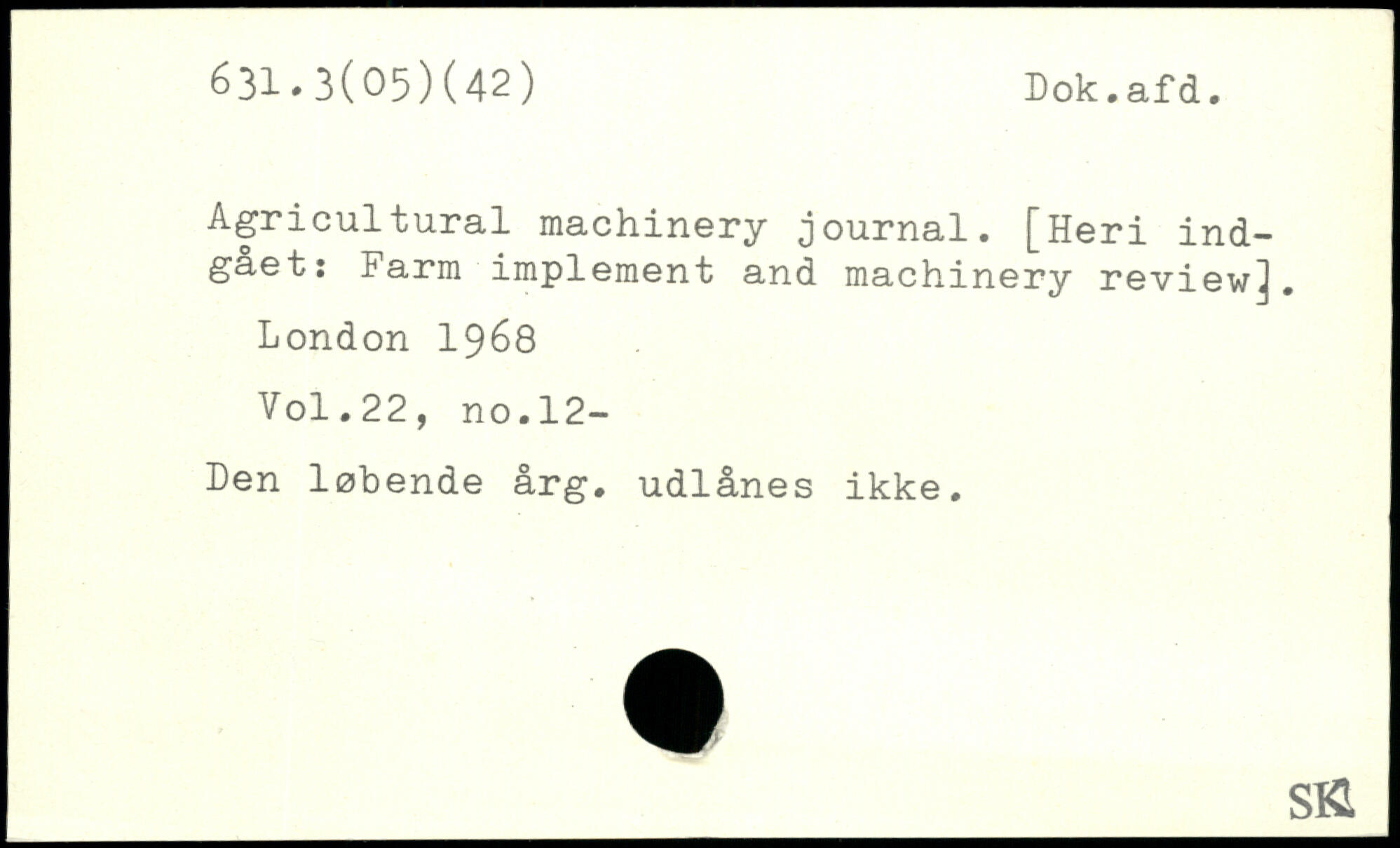 Agricultural machinery journal. [Heri indgået: Farm implement and machinery review]