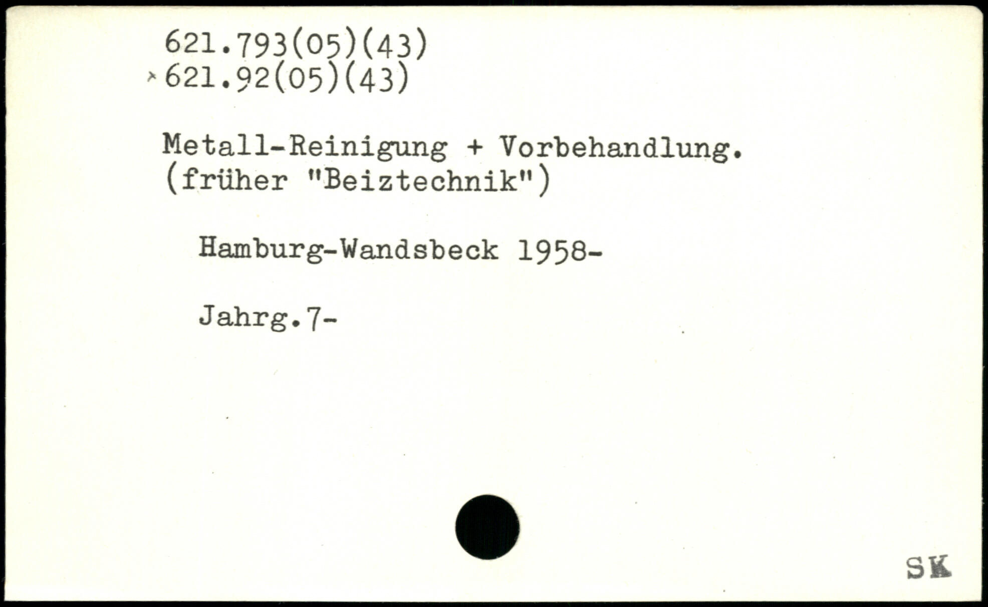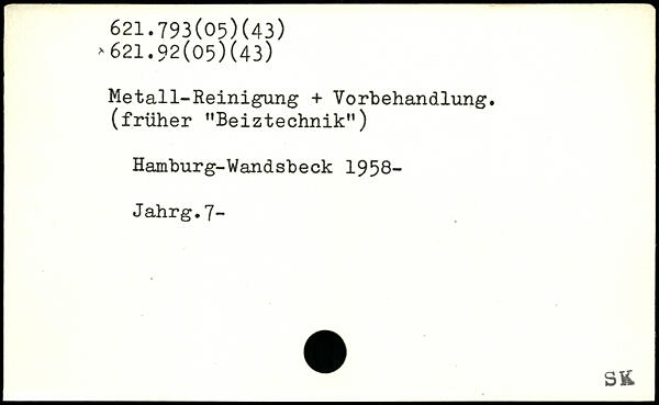 Metall-Reinigung + Vorbehandlung, (früher "Beiztechnik") Hamburg-Wandsbeck 1958- Jahrg.7-