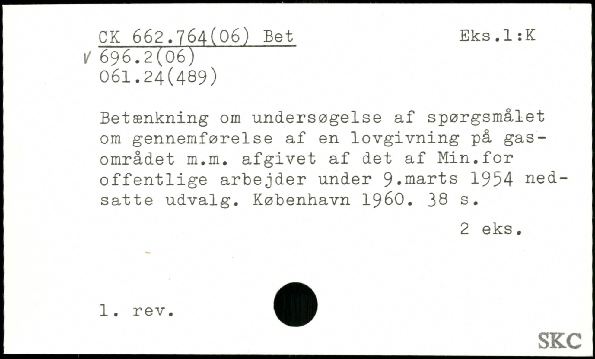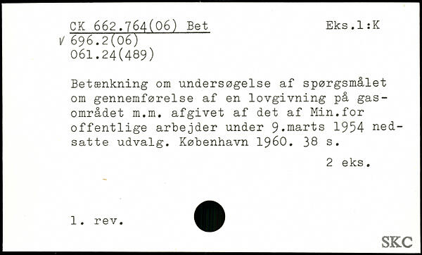 Betænkning om undersøgelse af spørgsmålet om gennemførelse af en lovgivning på gas-området m.m. afgivet af det af Min.for offentlige arbejder under 9,marts 1954 nedsatte udvalg.