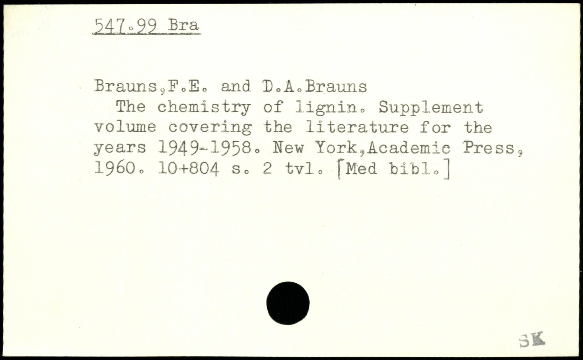 Brauns9FoEo and D,A,Brauns The chemistry of lignin, Supplement volume covering the literature for the years 1949-1958, New YorksAcademie Press9 1960