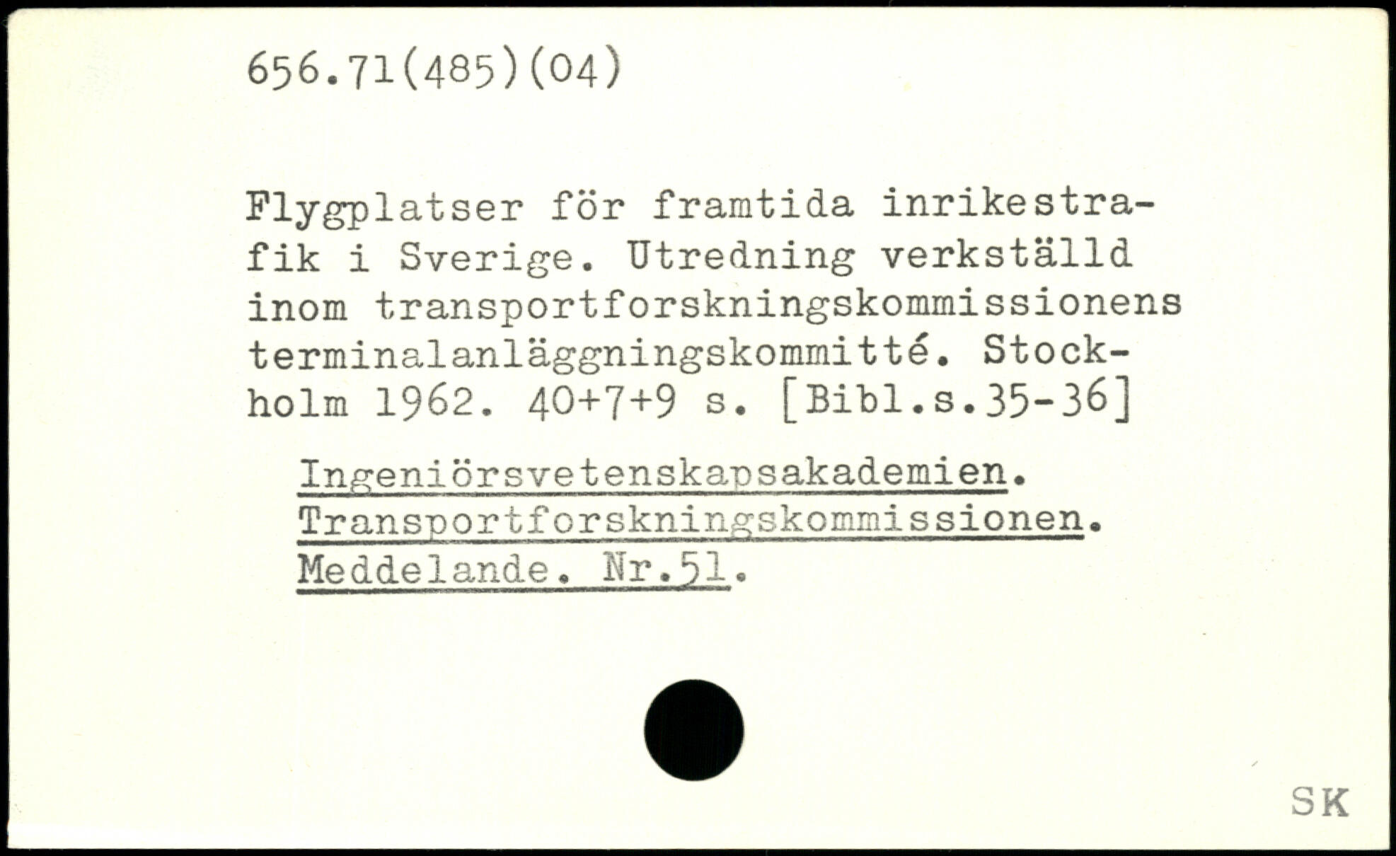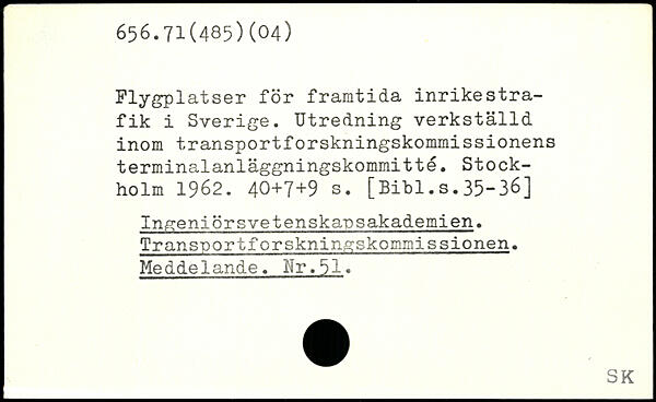 Flygpla.tser för framtida inrikestra-fik i Sverige. Utredning verkställd inom transportforskningskommissionens terminalanläggningskommitté.