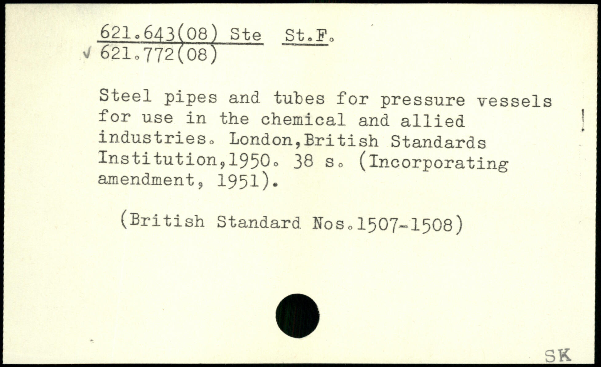 Steel pipes and tubes for pressure vessels for use in the chemical and allied industries.