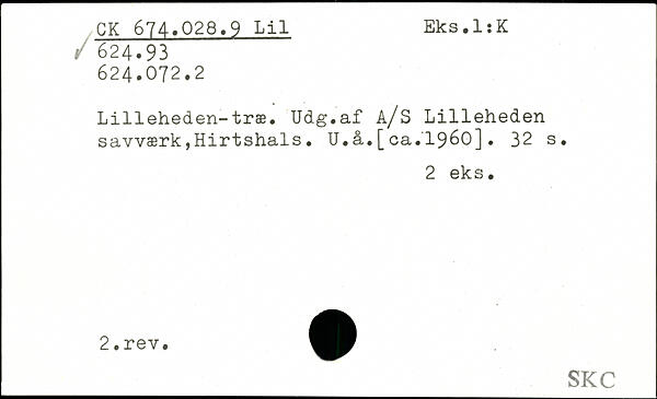 Lilleheden-træ. Udg.af å/S Lilleheden savværk,Hirtshals. U.å.[ca.1960].