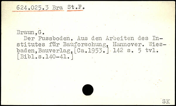 . Braun,0. Der Fussboden. Aus den Arbeiten des Institutes für Bauforschung. Hannover. Wiesbaden, Bauverlag,[Ca.1955.J
