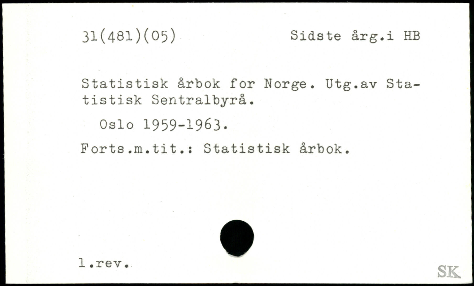 Statistisk årbok for Norge. Utg.av Statistisk Sentralbyrå. Oslo 1959-1963. Forts.m.tit.i Statistisk årbok. 1-rev-_SK