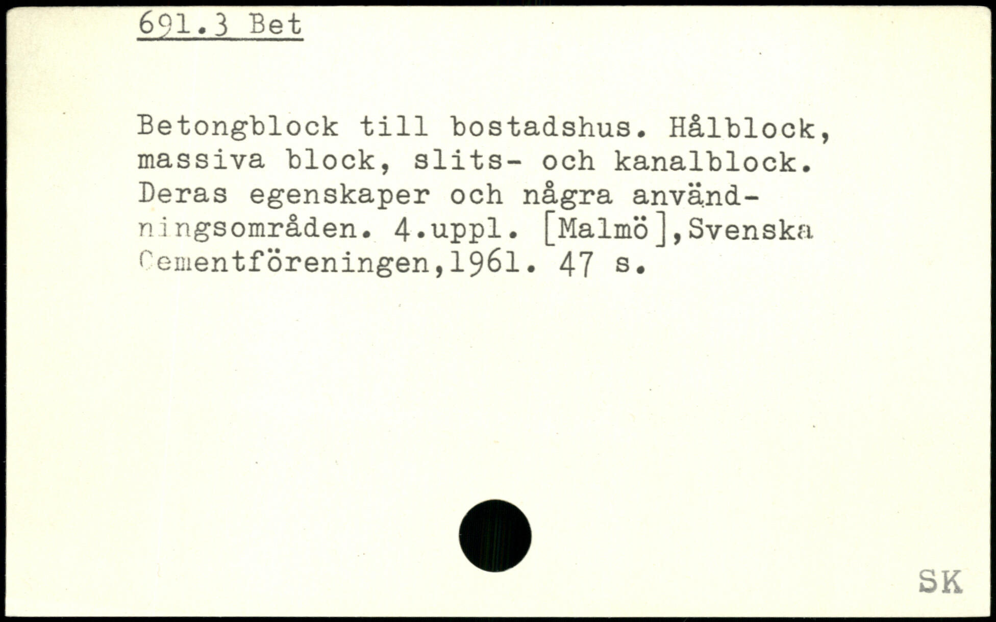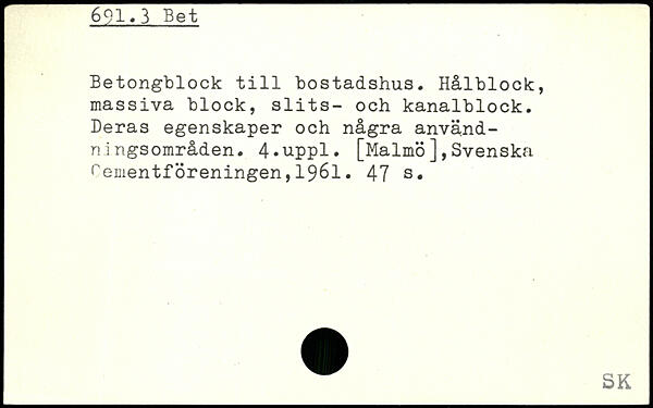 Betongblock till bostadshus. Hålblock:, massiva block, slits- och kanalblock. Deras egenskaper och några anvä.nd-ni ngsområden. 4-uppl.