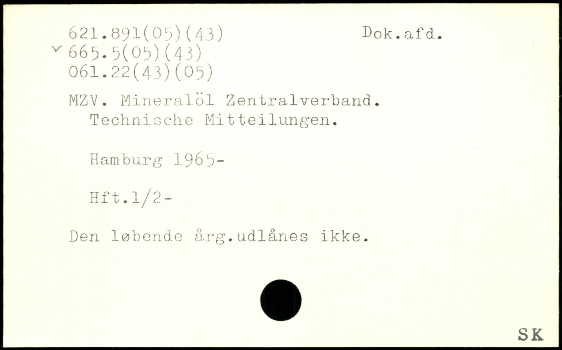 MZV. Mineralöl Zentralverband. Technische Mitteilungen. Hamburg 19 6 5- Hft.l/2- Den løbende årg.udlånes ikke.