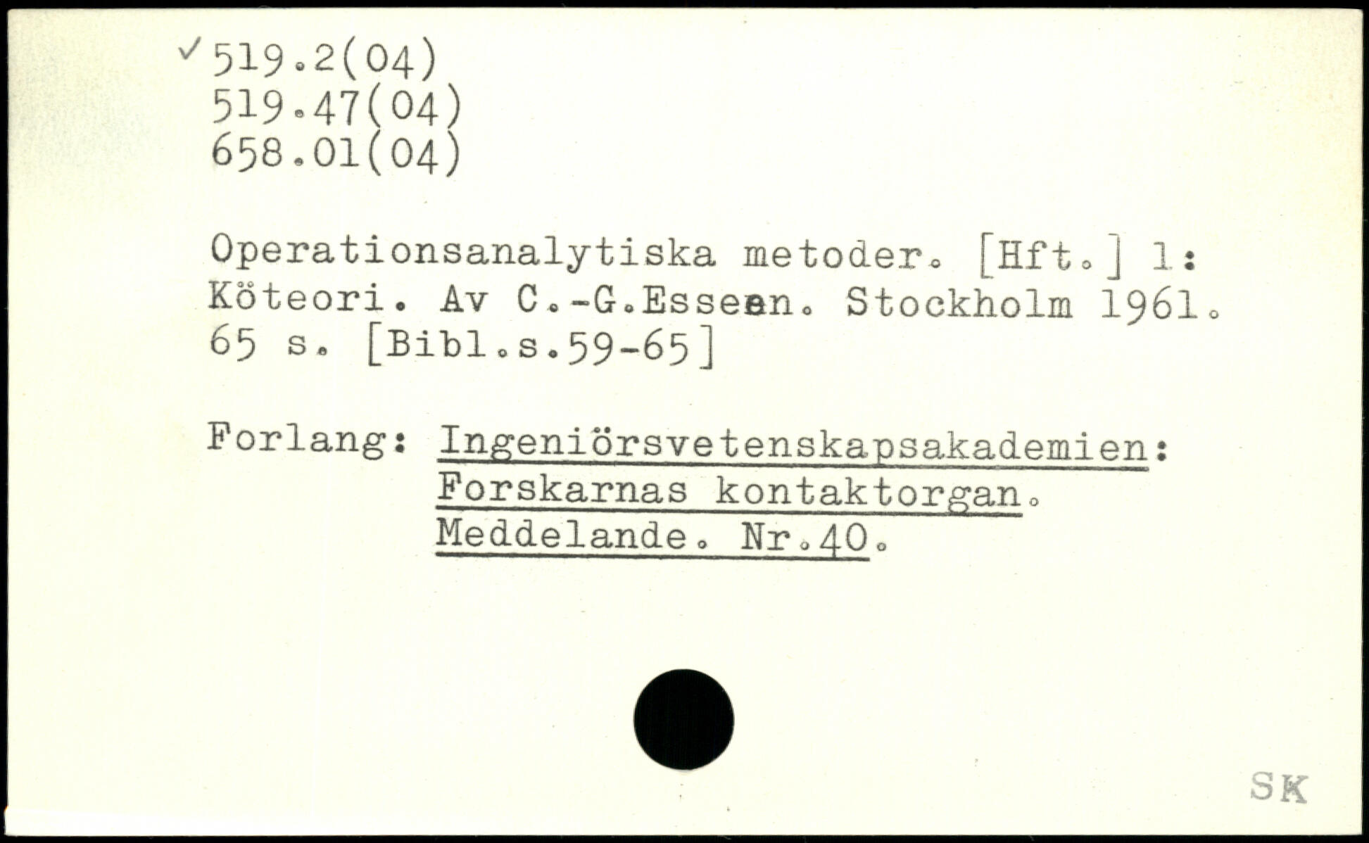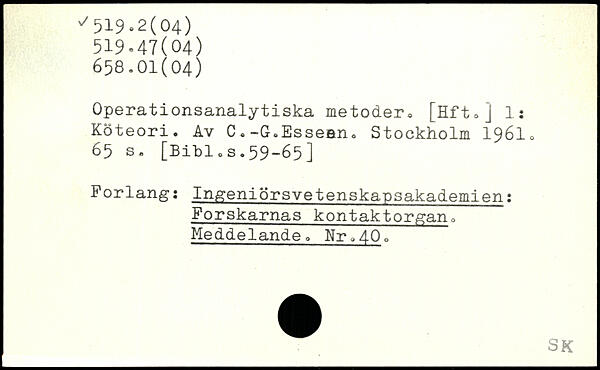 Operationsanalytiska metoder, [Hft.] Is Köteori. Av C.-G.Esseen.