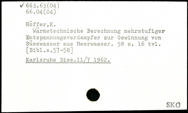 Warraetechnische Berechnung mehrstufiger Entspannungsverdampfer zur Gewinnung von Süsswasser aus Meerwasser.