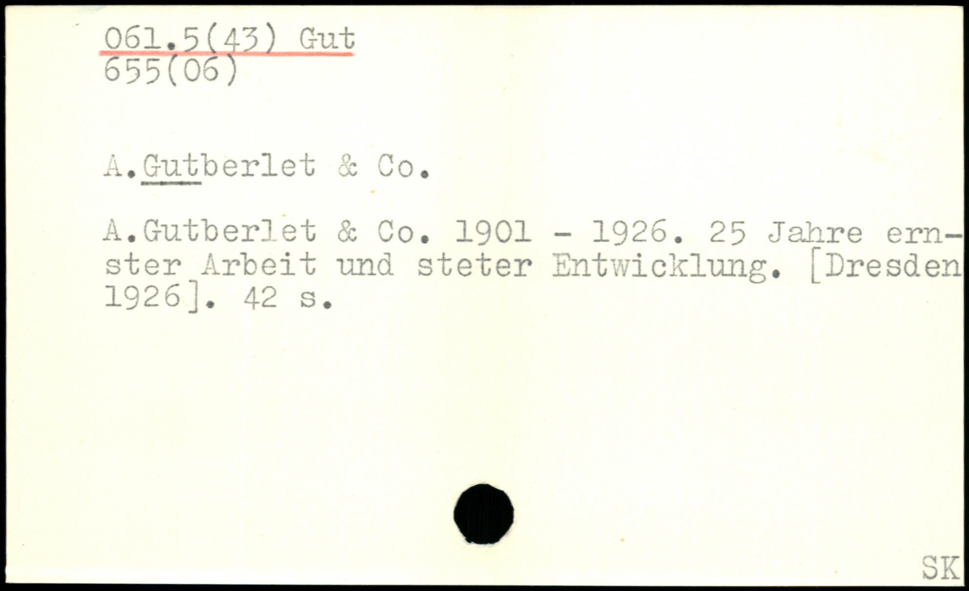 A.Gutberiet & Go, A.Gutberiet & Go. 1901 - 1926. 25 Jahre ernster Arbeit und steter Entwicklung, [Dresden 1926]