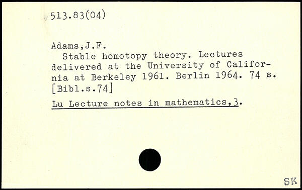 Stable homotopy theory. Lectures^ delivered at the University of California at Berkeley 1961.