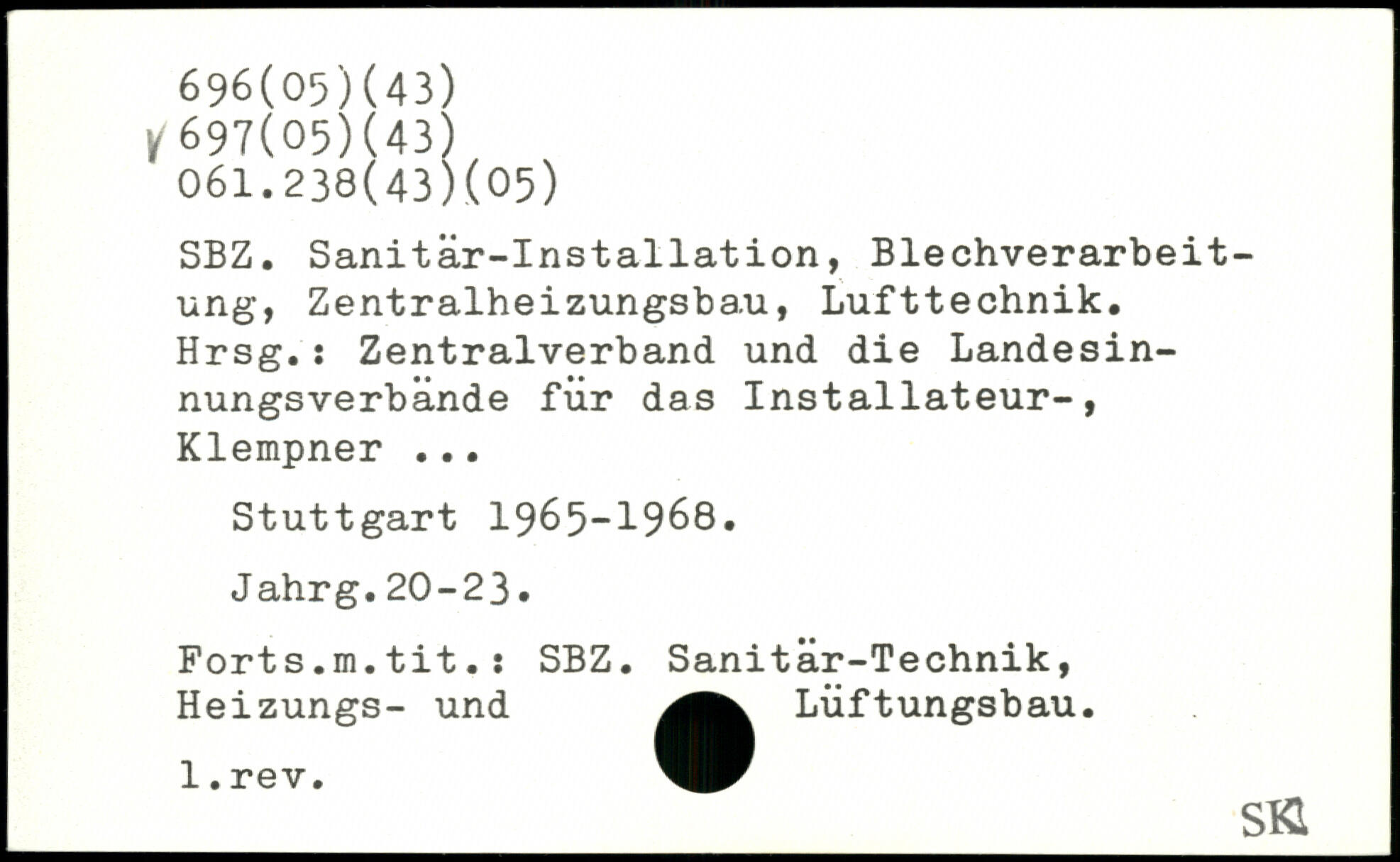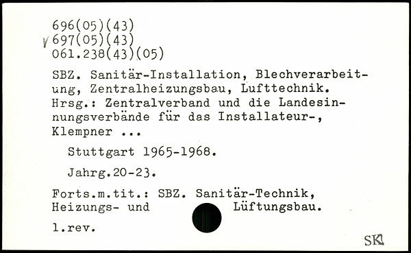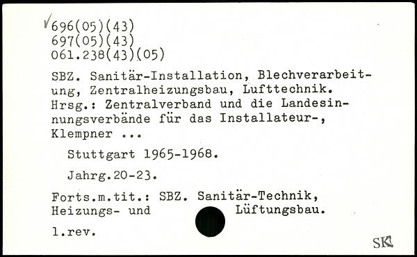 SBZ. Sanitär-Installation, Blechverarbeitung, Zentralheizungsbau, Lufttechnik. Hrsg.: Zentralverband und die Landesinnungsverbände für das Installateur-, Klempner ...