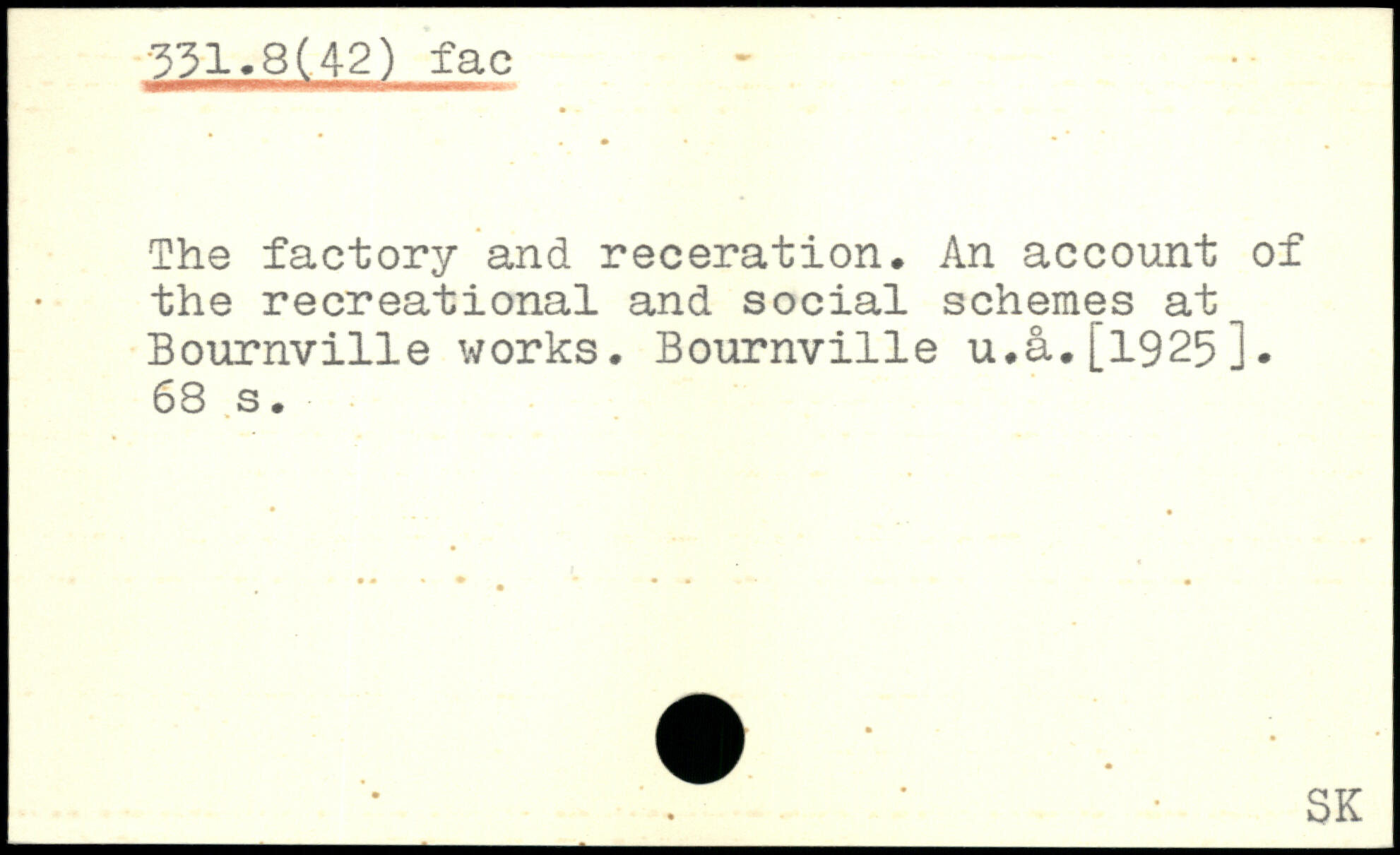 The factory and receration. An account of the recreational and social schemes at Bournville works. Bournville u. a. [1925 ].