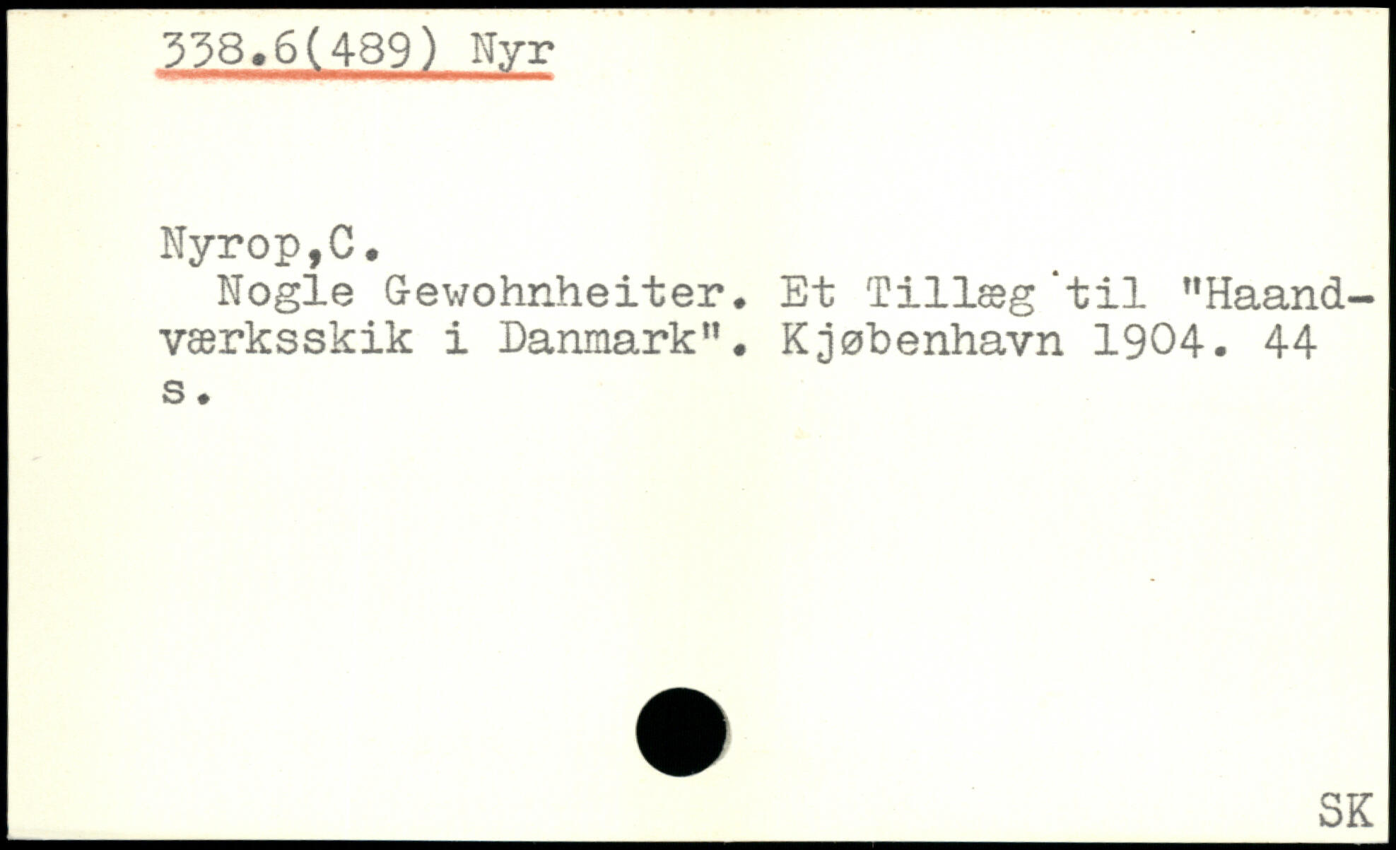 Nogle Gewohnheiter. Et Tillæg ‘til "Haand-værksskik i Danmark". Kjøbenhavn 1904.