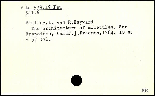 The architecture of molecules. San Francisco,[Calif.],Freeman,1964. + 57 tvl.