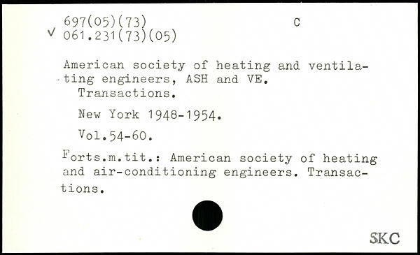 American society of heating and ventilating engineers, ASH and VE. Transactions.