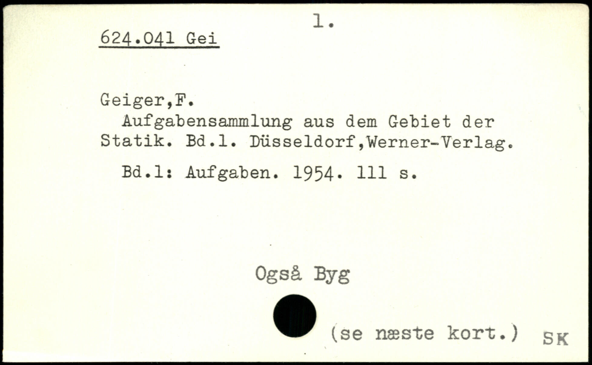 Aufgabensammlung aus dem Gebiet der Statik. Bd.l. Düsseldorf,Werner-Verlag. Bd.l: Aufgaben. 1954, Hl s. Også Byg