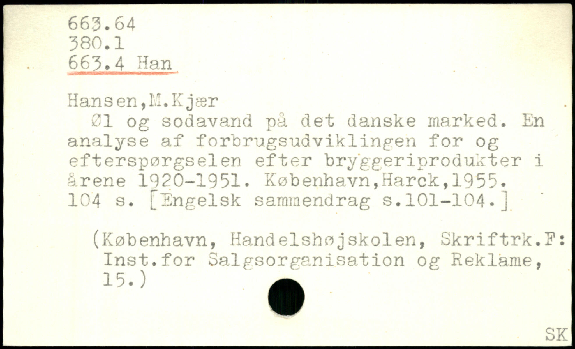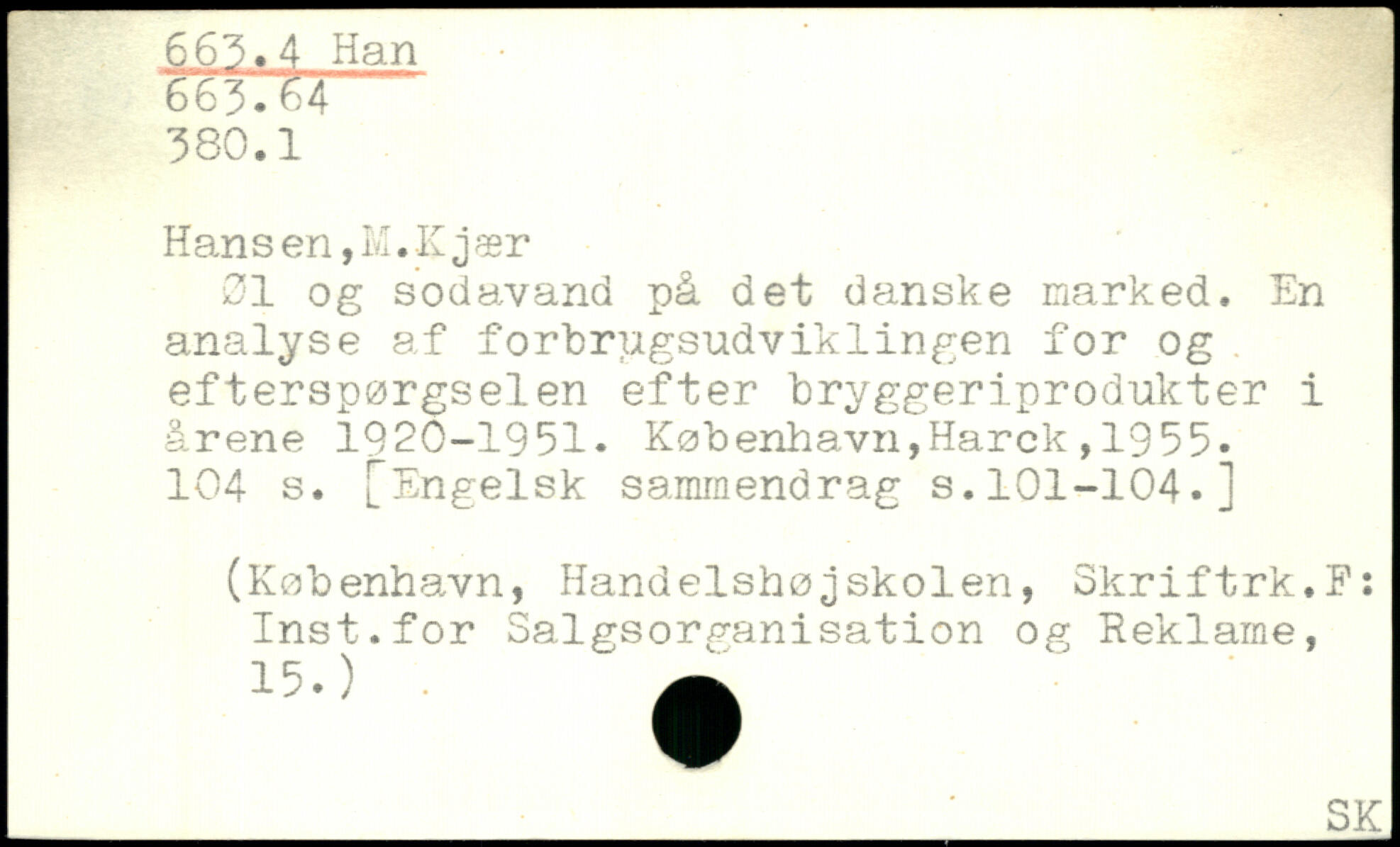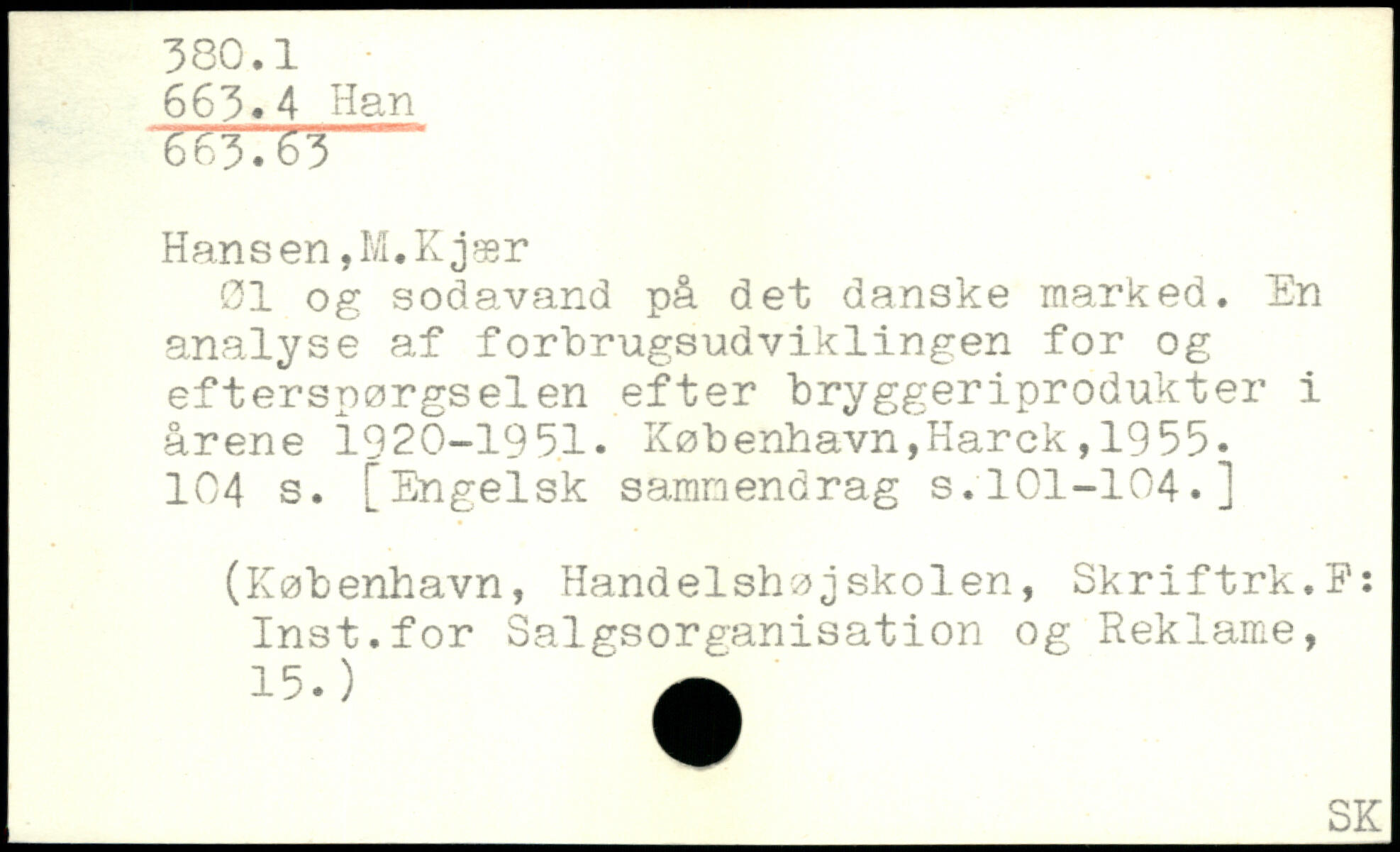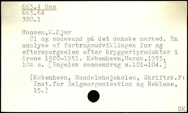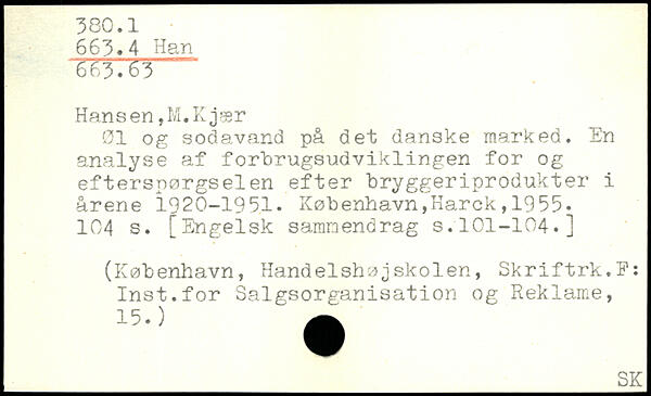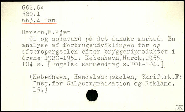 øl og sodavand på det danske marked. En analyse af forbrugsudviklingen for og efterspørgselen efter bryggeriprodukter i årene 1920-1951.